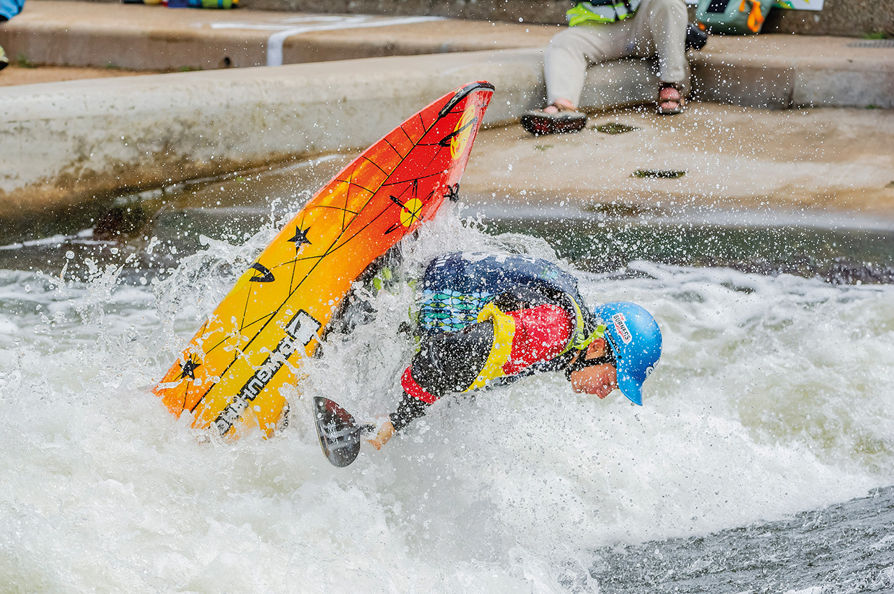 There are few professionals within this sport, and most athletes train around full-time work and studies. Notable exceptions to this are USA’s Dane Jackson, a full-time athlete, cruising the world’s water courses from tiny technical holes to giant 100ft+ waterfalls. This man has been surrounded by the pageantry of international competitions since birth.