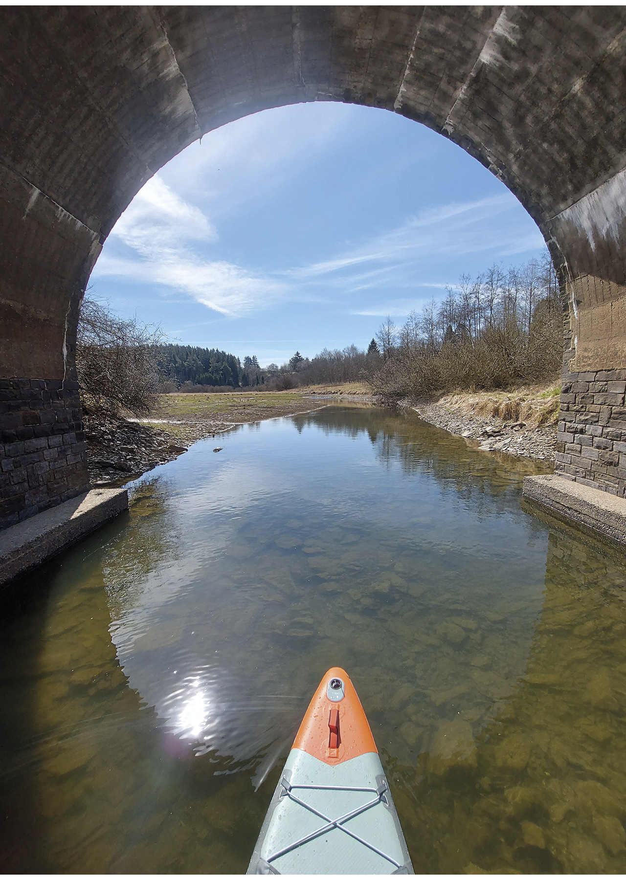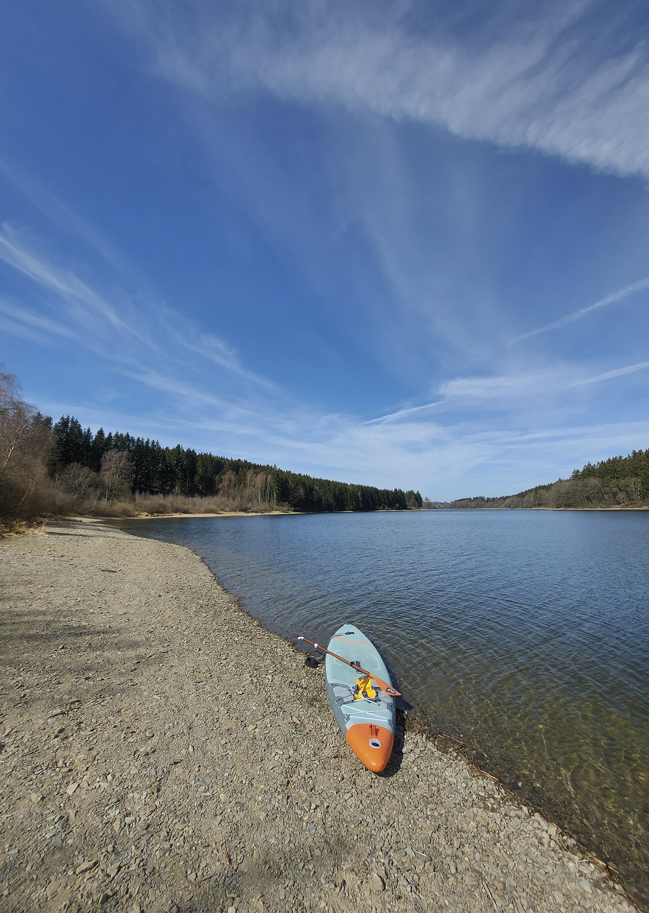 A lake session will offer superb views, sometimes wilder and sometimes more developed (hotel, sports centre). Fortunately, the area around the lake has retained a natural aspect. My greatest pleasure is to explore the small beaches accessible by water and to stop for a moment to soak up the atmosphere. With no less than 130 species of birds listed, you will certainly be lucky enough to be surrounded by birds of prey such as the Royal Milan or the osprey. On the shores, enjoy admiring the fish under your board. The lake is home to carp from one to 12 kilos! Get closer to the large dam to appreciate the 11 arches that support it.