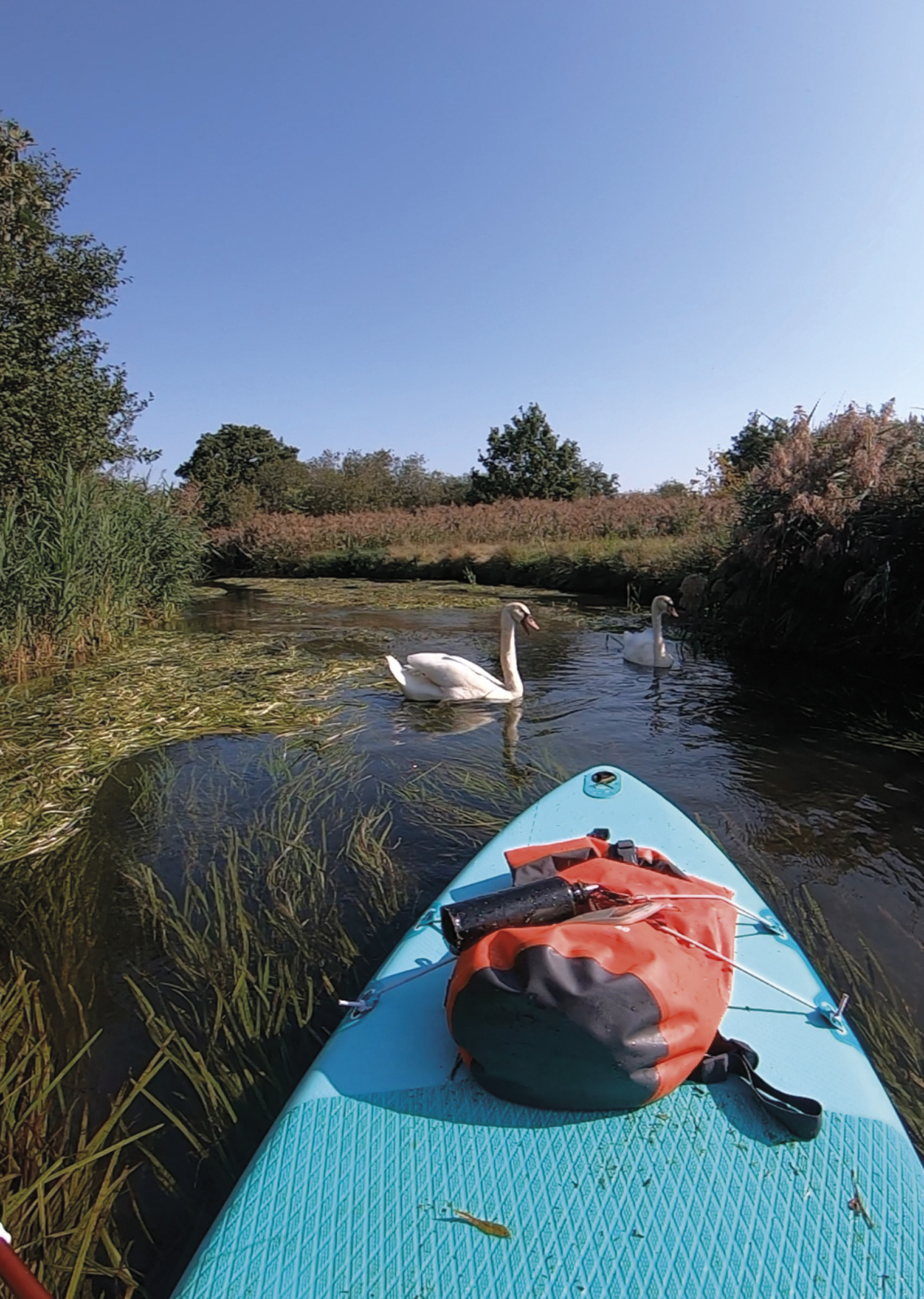 As for the swans, they are much more numerous, and you will certainly be lucky enough to come across a few. The animal will quickly inform you if it does not appreciate your presence. If it feels threatened and thinks you are invading its territory, it will become aggressive, flapping its wings and beak at you. Move on quickly and gently. Depending on the season, you may be lucky to spot eggs under your board. Please don’t touch them and just enjoy this surprise of nature.