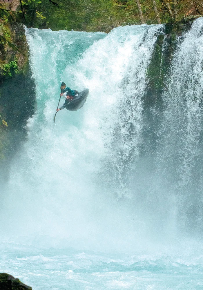 Staring down the landing of a tall waterfall with nowhere else to go is spectacular. It was hard for me to gain enough experience and earn the focus and calm to witness and thoroughly enjoy that moment. During my best lines and best waterfall sensations, I am just enjoying the experience while executing the plan I made. I guess the answer is the plan is going through my mind while I try to soak in the fleeting sensations.