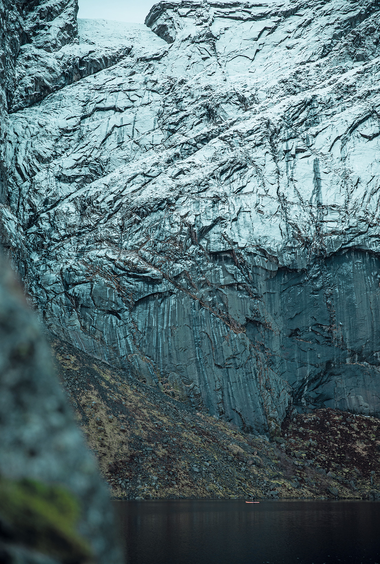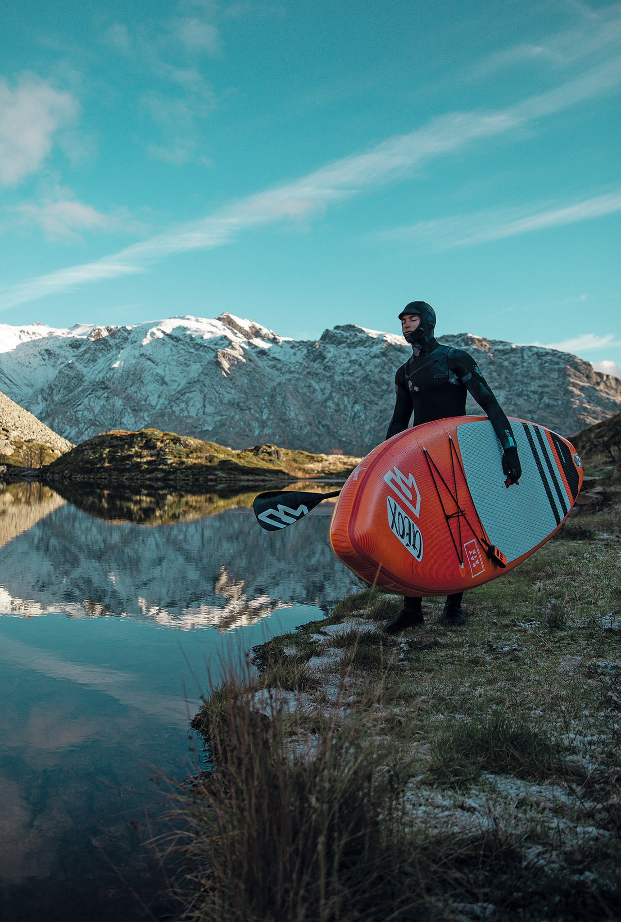 After a couple of days searching, I discovered a lake just above the sea in a mountain facing the ocean. It was a pretty long climb with the board but once there, the scenery was insane. SUP’ing there was an incredible experience, paddling in a lake and looking at the ocean at the same time was just amazing! Over the next few days we kept on driving through the islands, where every corner was very different and special. As the days passed we found the Reine and Flakstad areas were the most impressive places and we managed to score quite a few sessions there.