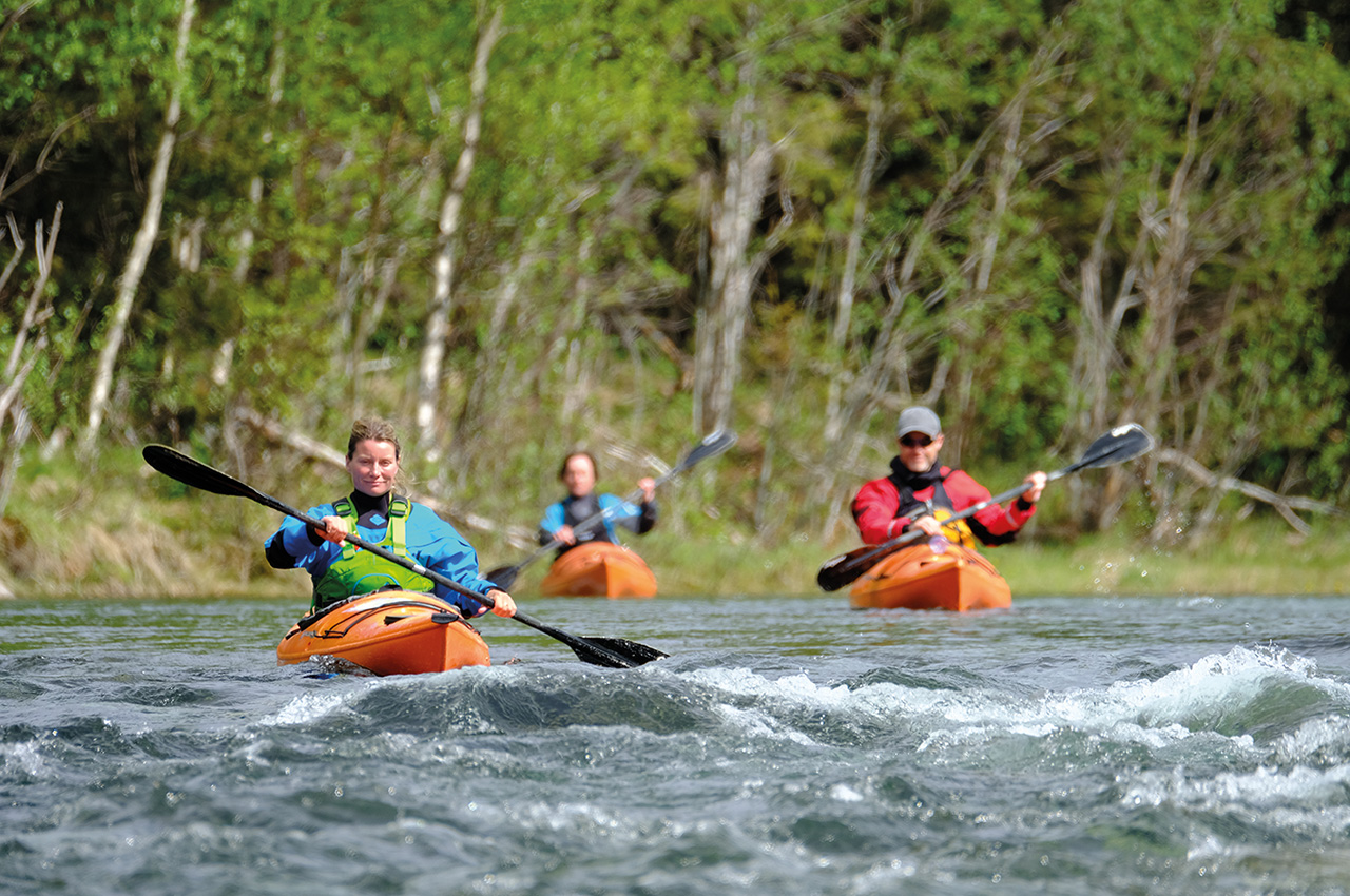 In a way it more seems like a river taken from the Canadian wilderness, not in arctic Norway. Chatting our way upstream, we fall silent as we spot the waterfall. It is a great giant of cascading water and mist, roaring with power in this desolate, yet lush valley bed. We linger there for a while, soaking up the raw nature and pulling from its energy. Some places are pure magic. And as we turned our kayaks back downstream, to find our way back to civilization, we agreed that the Vistenfjord is simply that: Magical beyond means.
