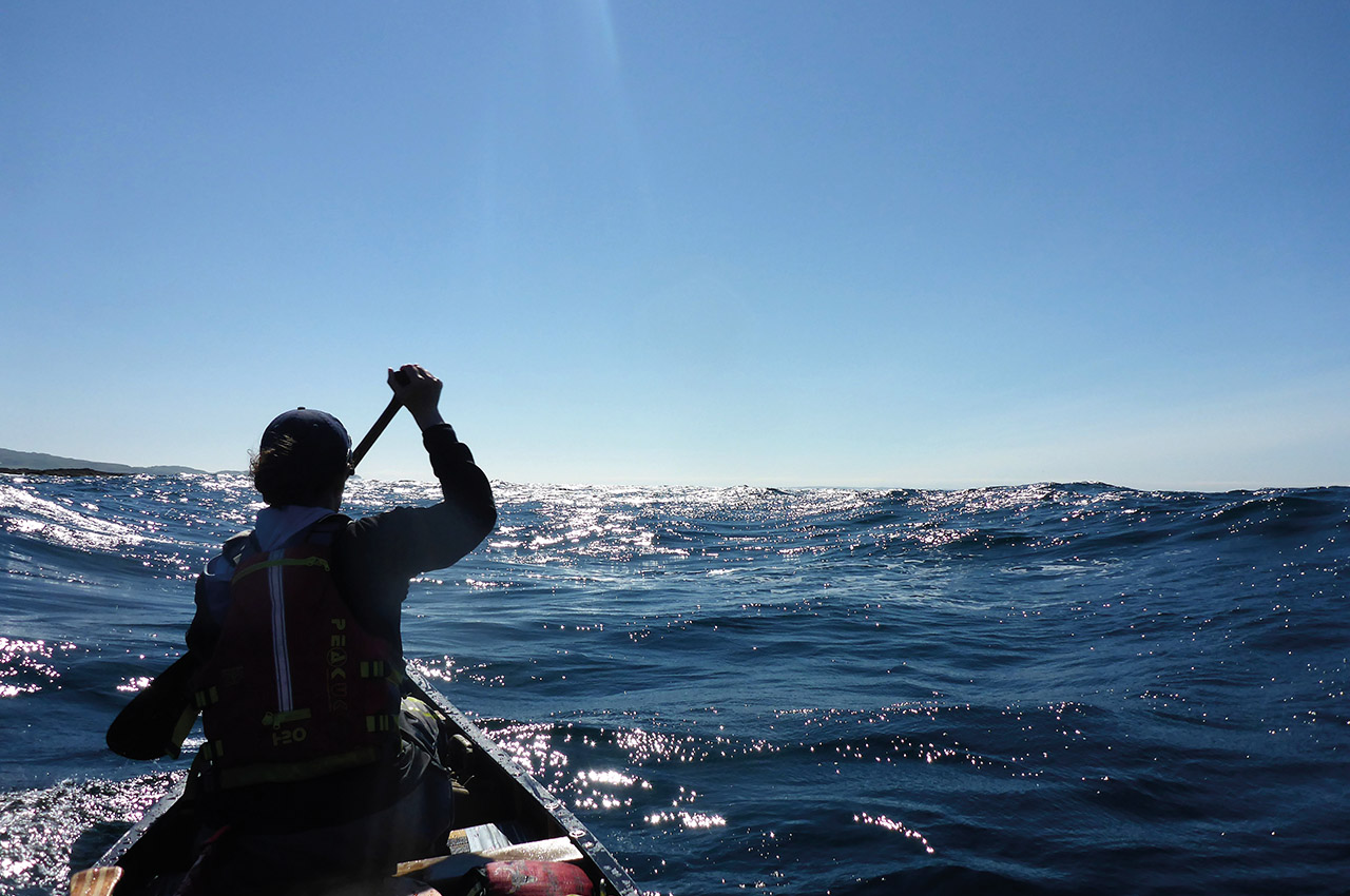 We had both been seasick and were feeling ill. Our progress was painfully slow and we were on the verge of turning around when Katrina pointed out to sea and shouted, “Colin, look, there’s a shark… or a whale… or something,” and sure enough, just 20 feet from the bow of our canoe, a Minke Whale breached the surface several times, taking our minds off our pain. This was a real moral boost for us both – we perked up, laughed at Katrina calling it a shark, and put more effort into our paddling until we reached our destination.