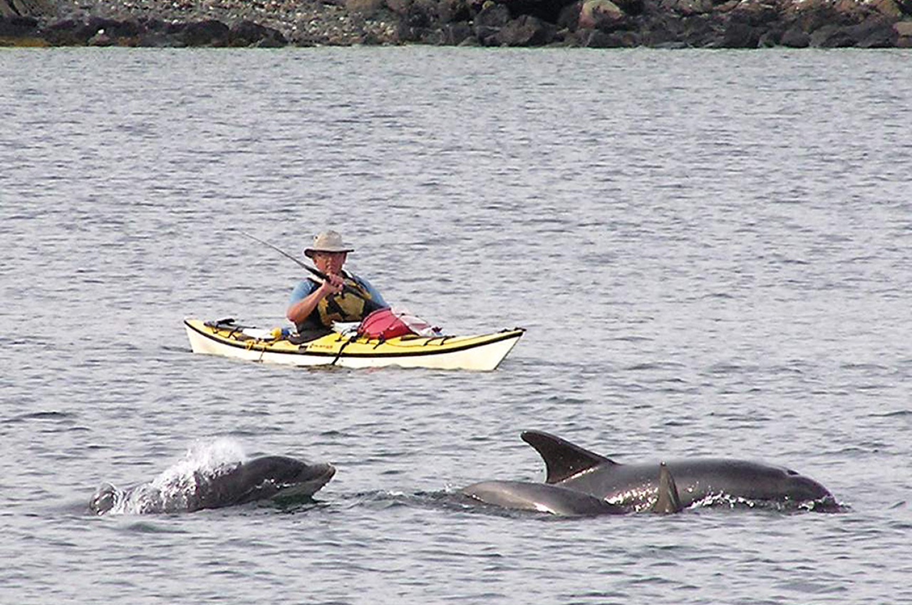 I have been quite spoilt with so much on land and sea. Walking out of the mist on a Scottish mountain to find myself almost nose to nose with a stag. We both froze before each of us doing a quick retreat. On the sea to have a basking shark in the same small tide race but heading the opposite way within inches of my boat or to have a minke whale blow within a short distance from me (very fishy breath). Seeing a grizzly bear from close quarters whilst on a narrow part of a river: six paddlers, six cameras and not a photo taken. Some very quiet but efficient paddling. We did have elephants at a campsite in Kenya but that doesn’t count as I slept through that!