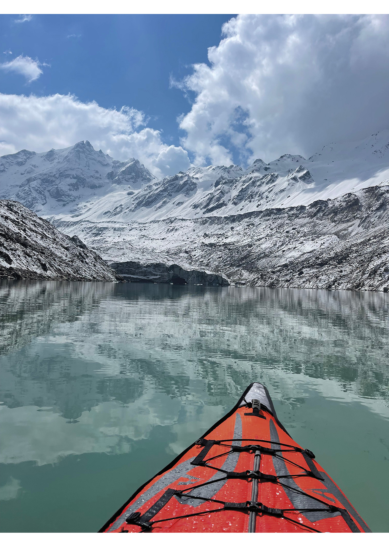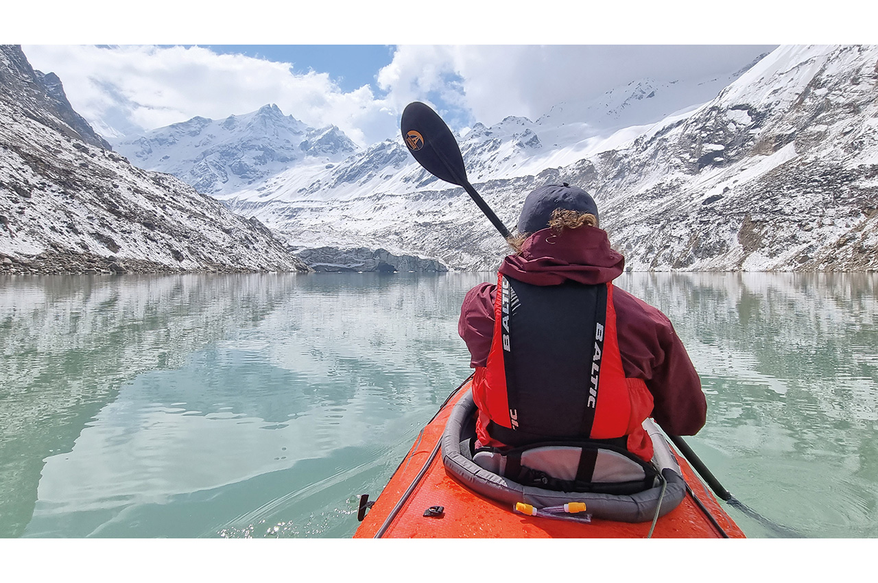 This time last year, I could count on one hand the number of times I’d been in a kayak. Fast forward to May 2023, and along with my colleague Duncan, I’m paddling on a glacial lake in remote Nepal, with ice towering above me, installing equipment that will help us predict how this glacier will behave in response to climate change.