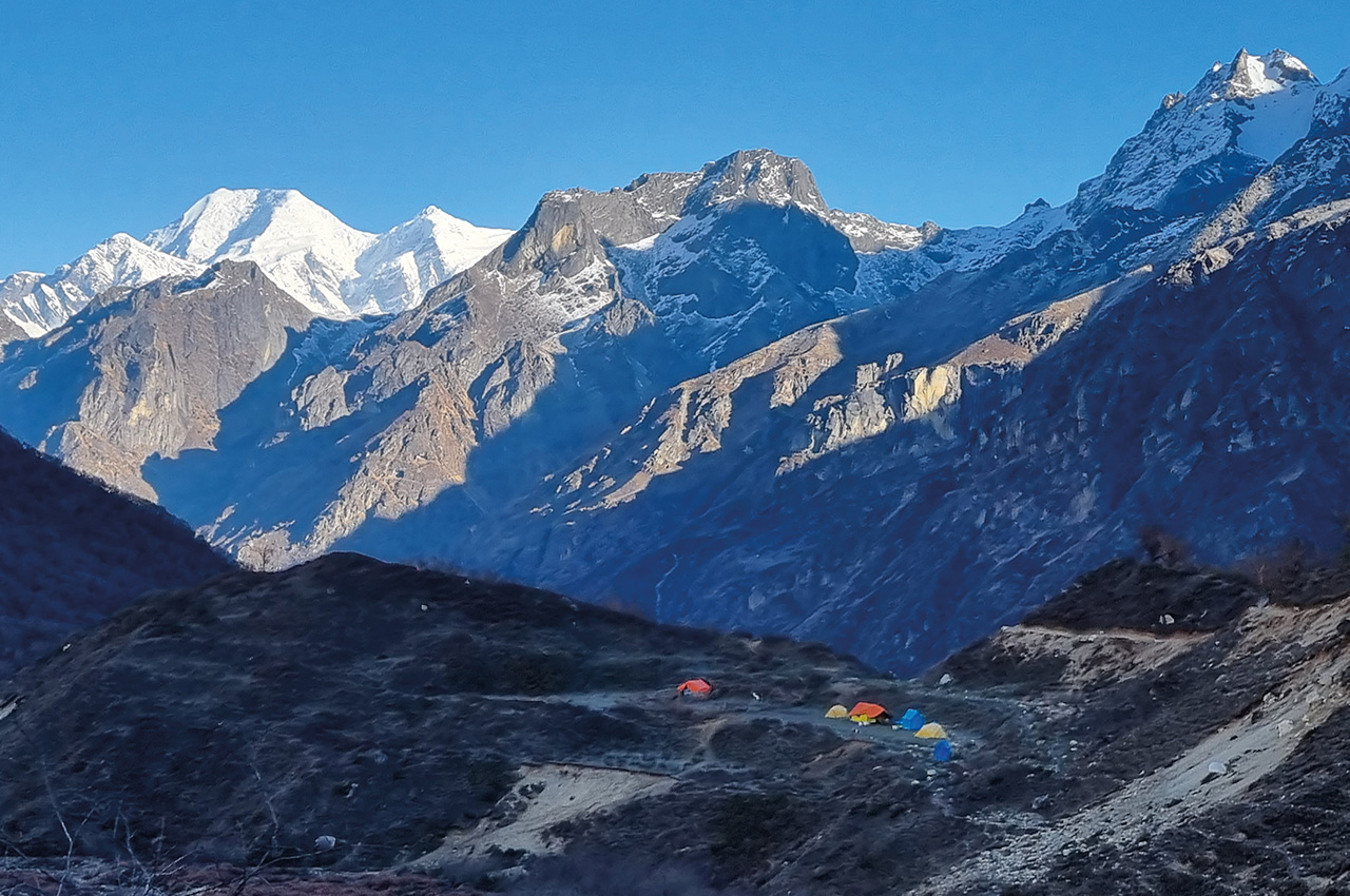 We departed Kathmandu by jeep to travel to the trailhead. After a nine-hour journey, we arrived at our guesthouse in Karte, ready to begin our trek the following day. Residing at just 2,000 m a.s.l., we had over 2,000 m of elevation to gain over a two-day trek, a little daunting for your first time at high elevation! Luckily, a combination of the amazing scenery and our guide Mahesh’s skilful pacing, the trek was very enjoyable. After passing through dense forests filled with blooming Rhododendron trees, crystal clear waterfalls and many Yaks, we arrived at Dona Lake – ready to set up our camp for the next ten days.