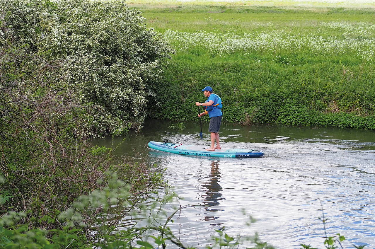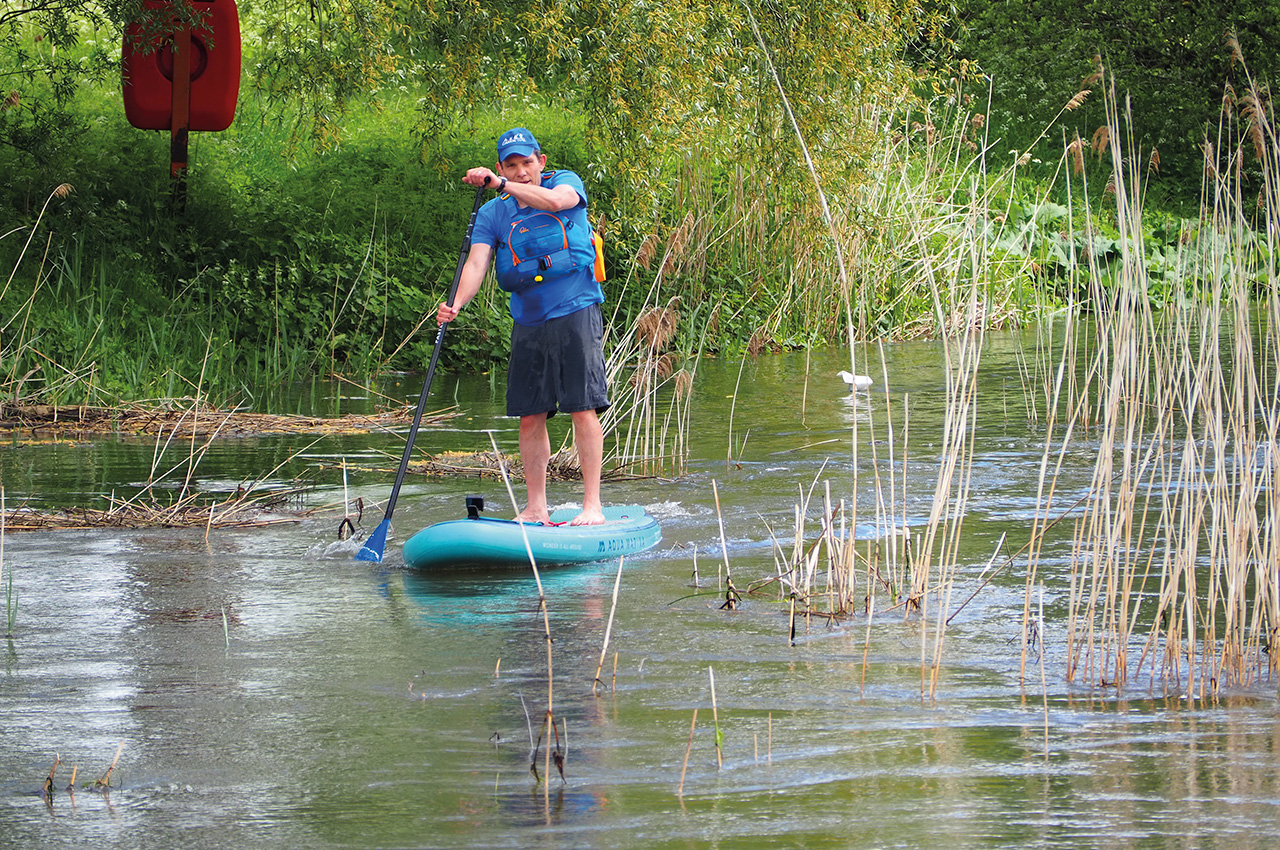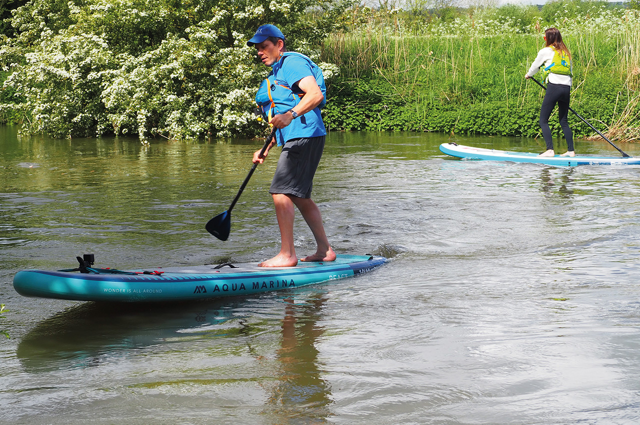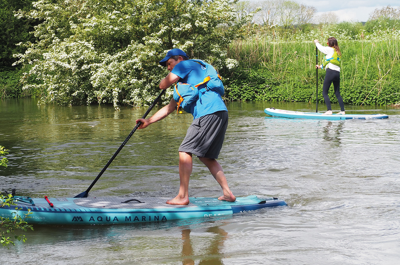 Once into the swing of things, we tried some step-back turns and ‘walking the board’, all of which felt comfortable on the board especially given its forgiving volume, shape and solid construction. Paddling upstream into higher flows, the board tracked well, maintained speed and had good glide for the round market that it was pitching at.