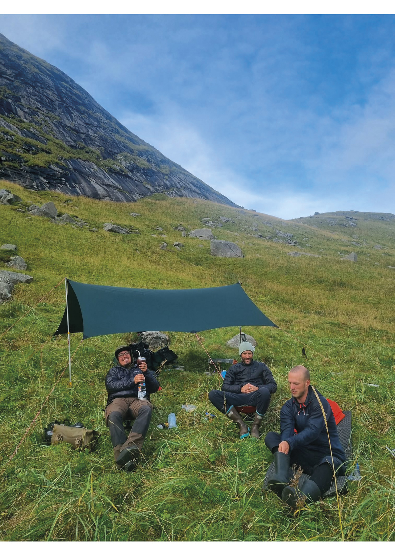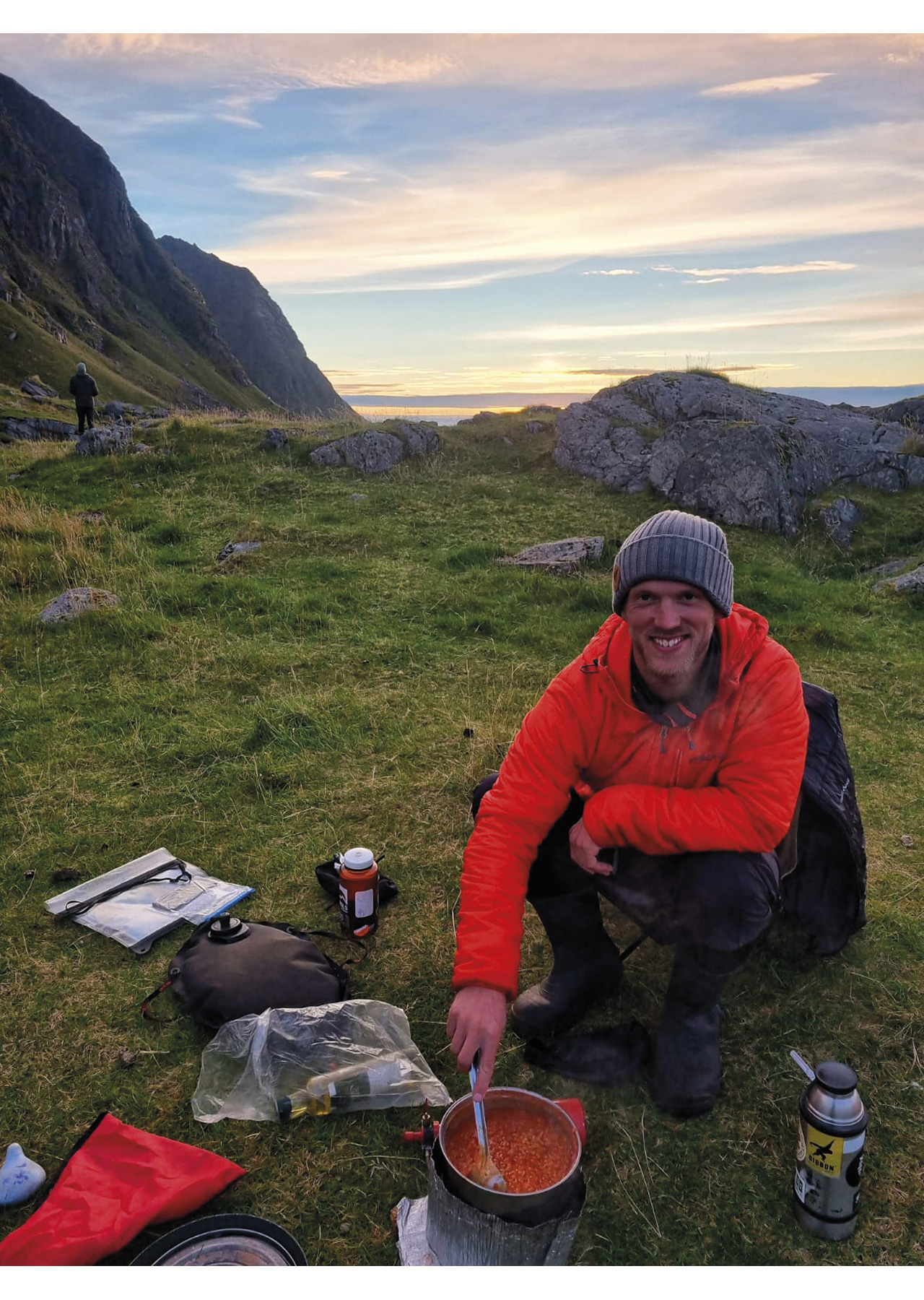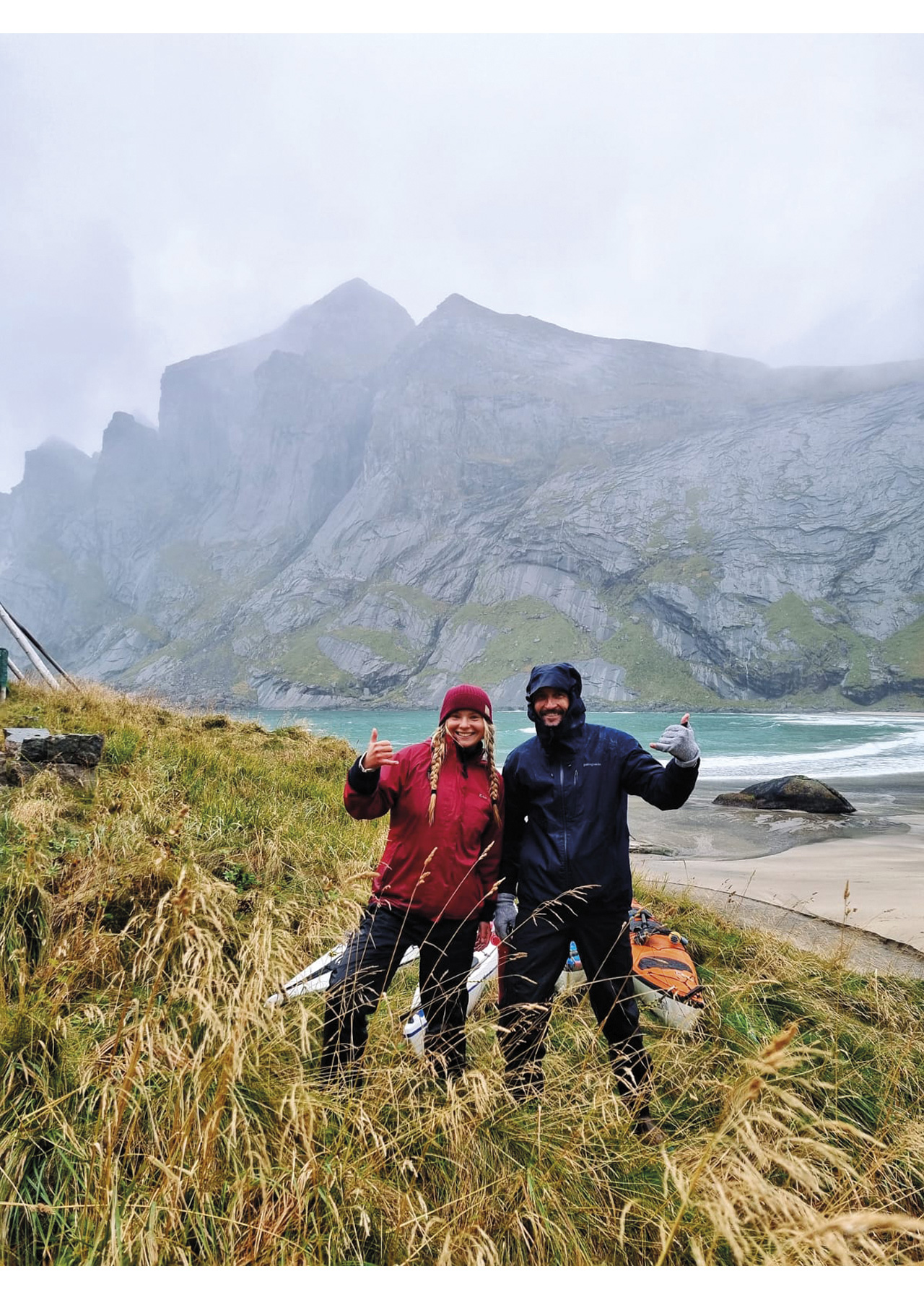 That night we stayed in a hut on Lofoten Beach camp. In the morning, I woke up to Oscar and Chris whispering. We drank Mate together and had a variety of conversations. It felt super good with the team. We connected excellently, and I felt safe expressing concerns or thoughts with these guys. Perfect base for it to be a good trip!