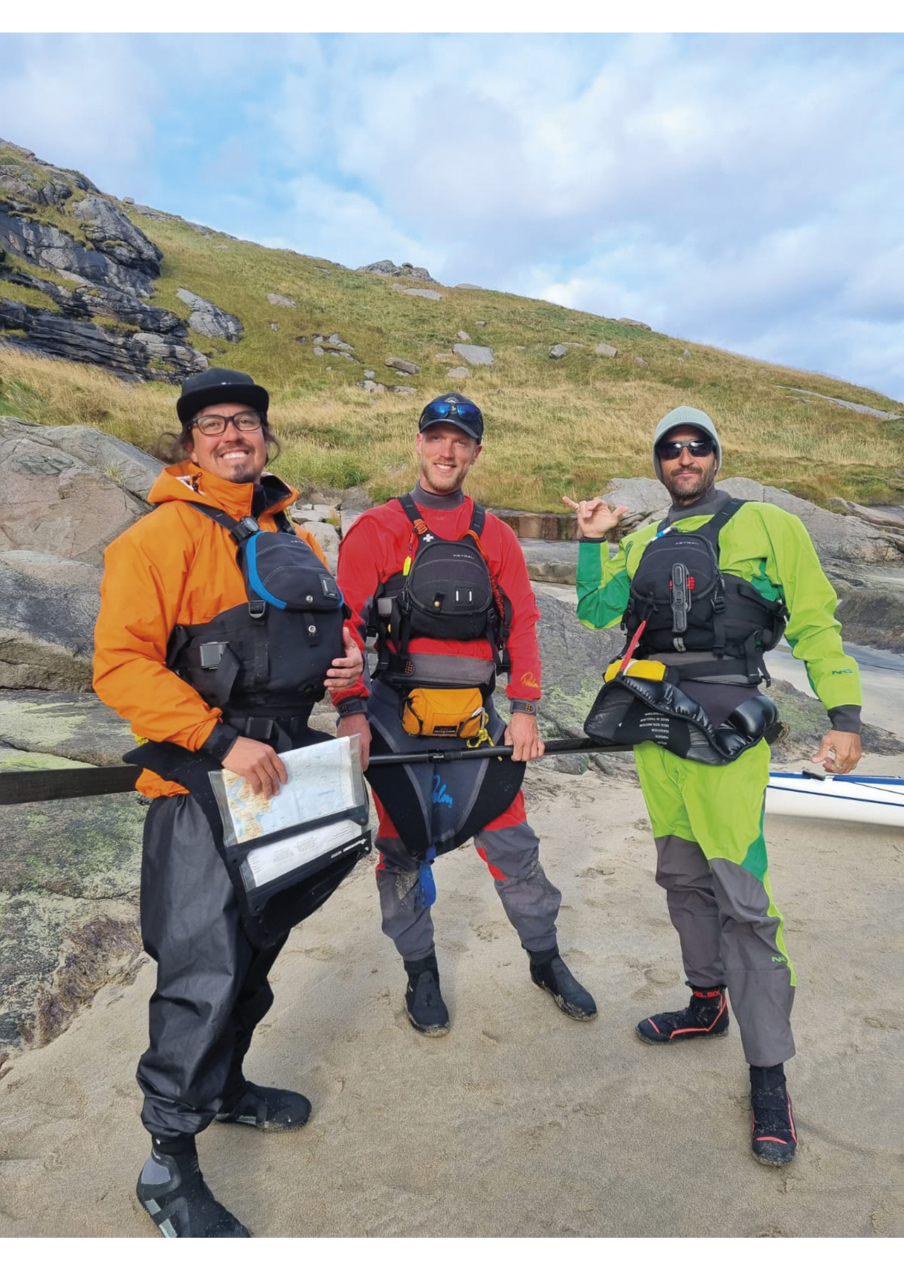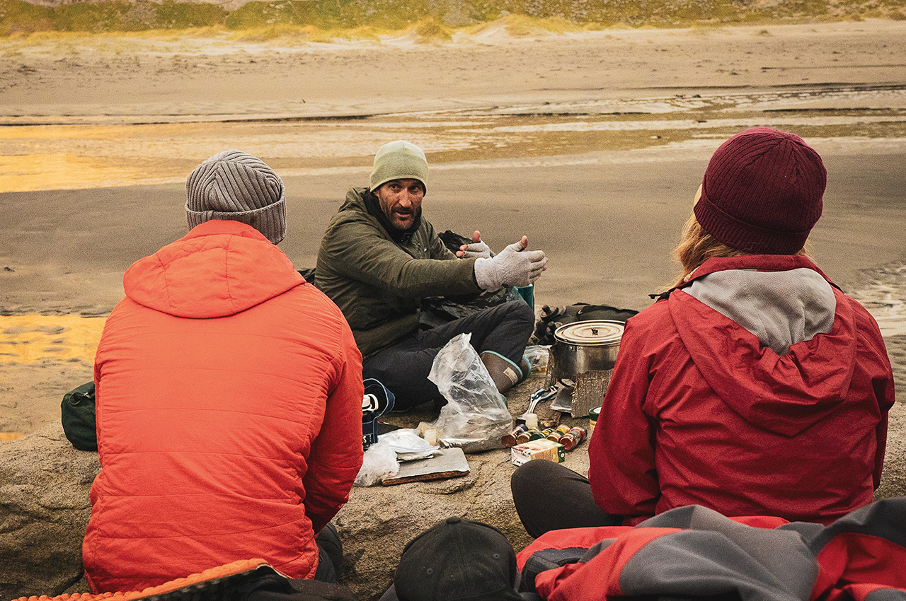 The team: Sandra Kakkuri: from Finland, outdoor guide; Lukas Hallberg: from Sweden, outdoor guide; Oscar Manguy: our expedition leader. From Mexico, owner of 360 North Collective and a Nols lead instructor; Christopher Manchester: from California, owner of Half Moon Bay Kayaking, Nols instructor, wilderness first aid instructor.