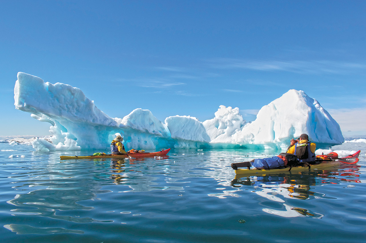 We were very conscious of the danger that kayaking near icebergs brings and this kept the group on their toes. Kayaking among the bergs requires a lot of concentration and care. They are a dangerous, beautiful and amazing work of nature – some are white, some green, some deep blue. They towered over our kayaks, sometimes leaning precariously, motivating us to paddle faster. Everyone in the group took hundreds of photos and when the whales appeared among the bergs, shouts of joy erupted from all of us.