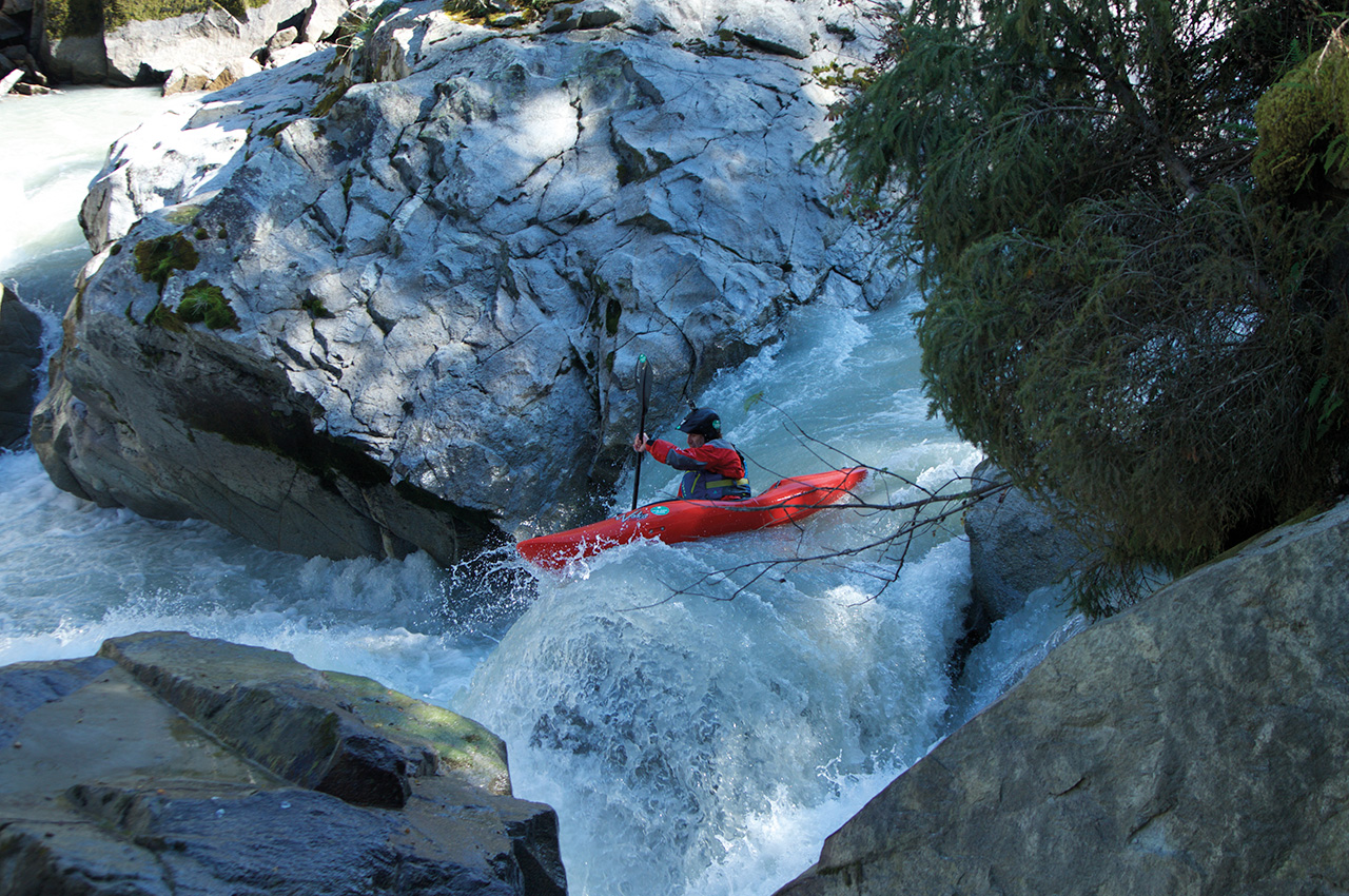 The Swiss part of the Inn is a fantastic day-out kayaking, and the views along the drive there and, of course, from the river are spectacular. Also not to be missed: a trip right up into the Oetz Valley to the foot of the mountains, which brings you to the fantastic little creek called the Venterache. The Lower is the most commonly run; the water temperature is cold, but the contrasting colours of the river and trees make the excellent whitewater a great day’s creeking.