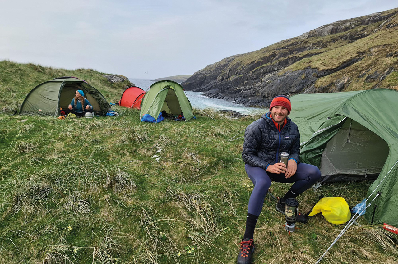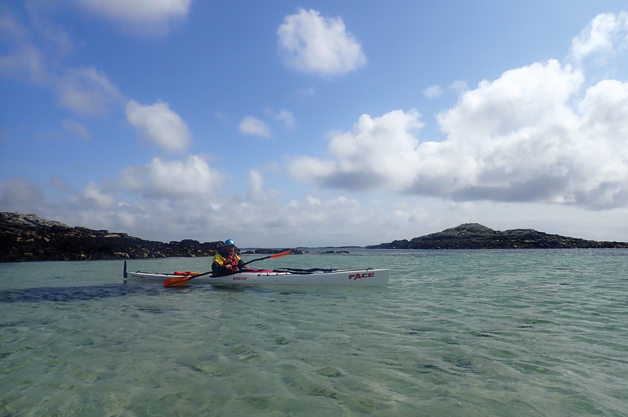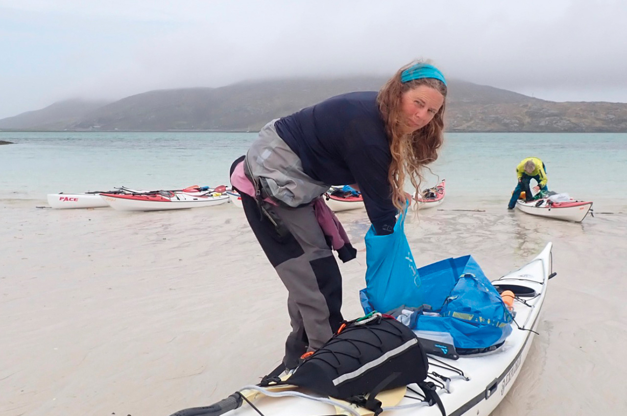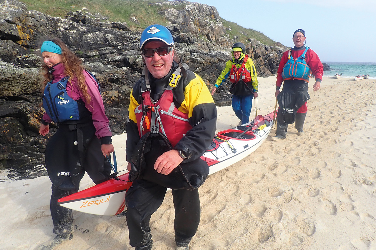 I’m on Vatersay, Outer Hebrides, reflecting on what makes a great sea kayaking expedition. My tent doorway frames a beautiful pale sandy beach and azure sea. The blue sky has been replaced by cloud and wind, remnants of a cold front neatly bisecting our week. Our team members chat under the neighbouring tent’s extended tarpaulin porch, planning the next days following this timely wind-enforced rest day.