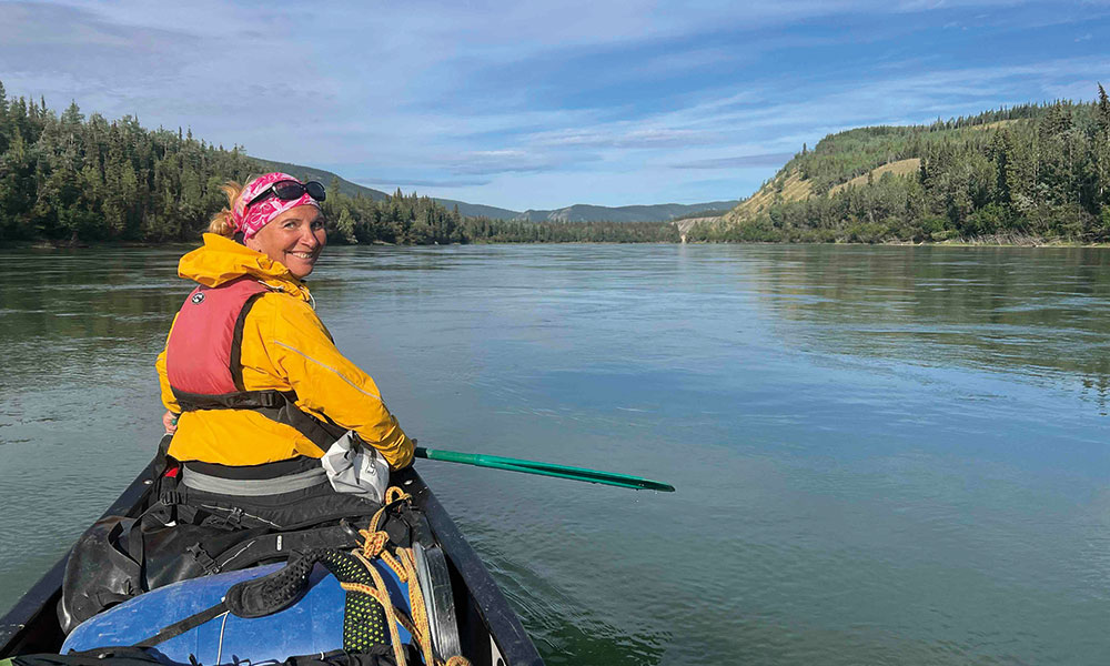 The Yukon River felt like a different world – broad, deep, and steady at an easy twelve kilometres per hour. We passed Little Salmon Village, still home to Little Salmon/Carmacks First Nation families, who hold their annual gathering here each July. By the time we reached Carmacks – a week from Quiet Lake – we had settled into a rhythm: rise with the light, paddle until mid-afternoon, set camp, cook, watch the river until the long twilight faded.