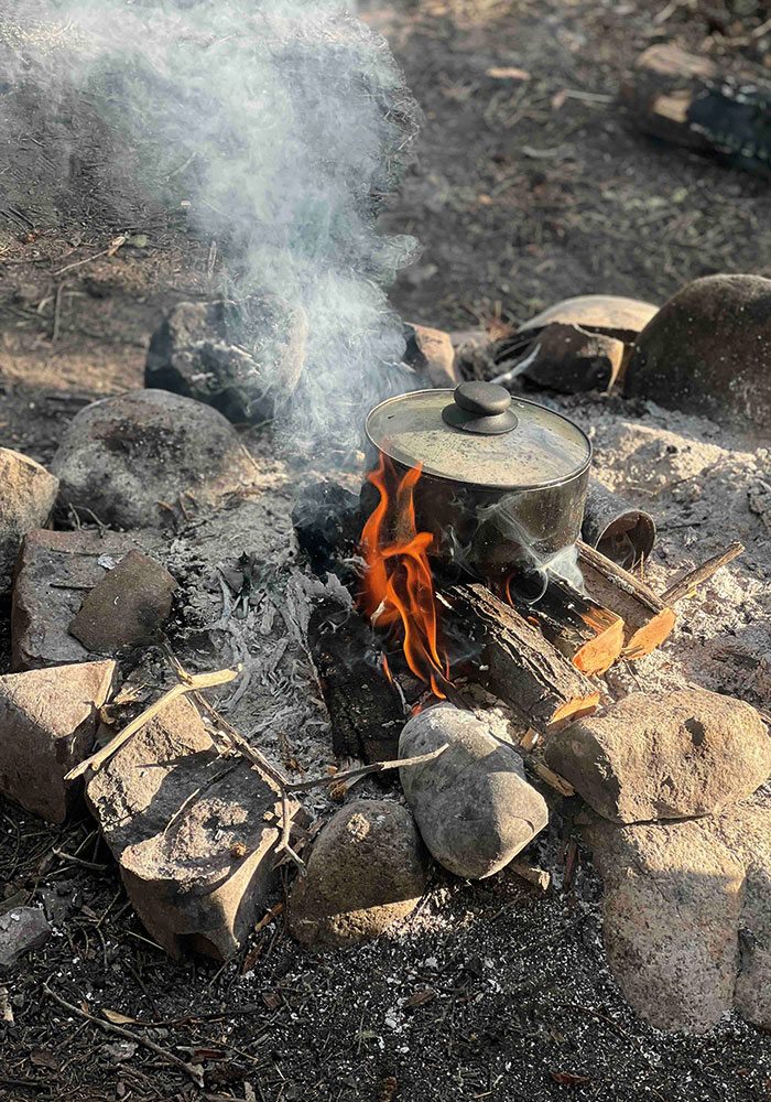That evening, we camped in a stand of spruce along the bank. The smell of woodsmoke mingled with the tang of fresh-caught fish in the pan. It felt good to be back in the rhythm of river life – firelighting, cooking over open flames, and listening to the water slide by in the dusk.