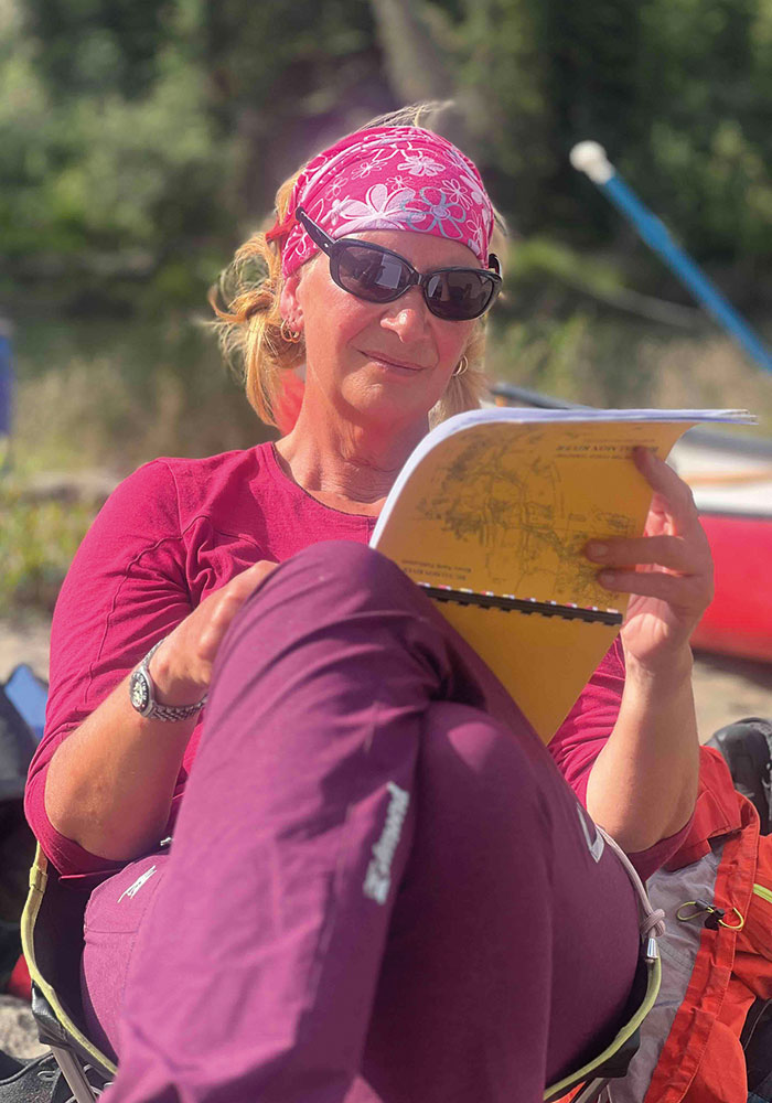 After five days, the tributaries of the South Big Salmon and the North Big Salmon rivers joined the main river. The current slowed in places, the river now broad enough for long, lazy meanders between gravel bars. In other areas, there were long riffles and wave trains with huge rocks in the river from cliffside erosion. Eventually, we reached the fish weir — a metal structure that channels salmon into a sensor that counts them on their upstream migration.