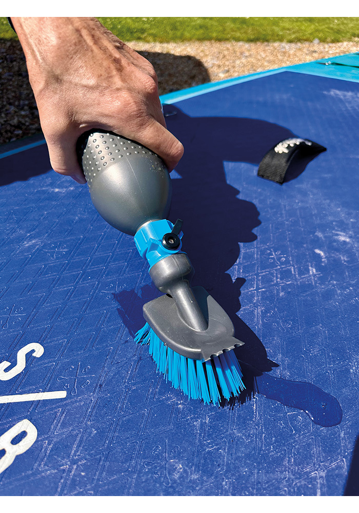 So, what makes Bio Mate so easy to use? I make sure I fill mine up with water and something like SUP Scrub Eco Paddleboard Cleaner before I leave home. Then, when I have finished paddling and before I leave the site, I can give everything a good scrub down with the heavy-duty bristled brush attached to the water bottle. If you’ve got any delicate areas on your board or paddle, such as stickers/transfers, the sponge is the gentler option.