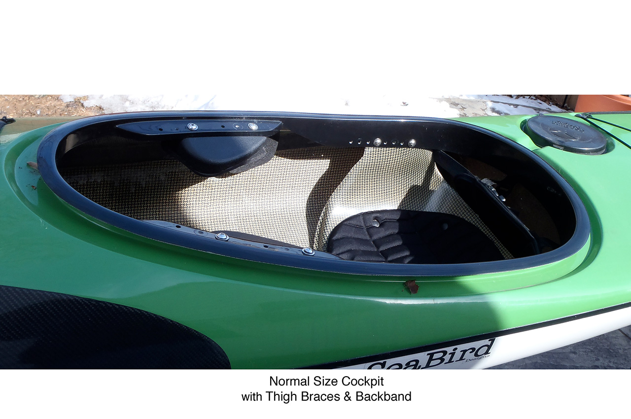 So, that’s part one of why you want to go with a real cockpit. The other is if your cockpit is huge and you are paddling, and a wave or wake comes over the bow of your kayak, you’ll have more water in your kayak than you would ever want! A kayak full of water is very unstable and very difficult to paddle. The smaller the opening, the less water will get in your kayak, making it difficult to manoeuvre to a safe place to dump or pump out your boat. You are safer in a kayak that ‘you wear’ or at least truly fits you than one that is like a bathtub.