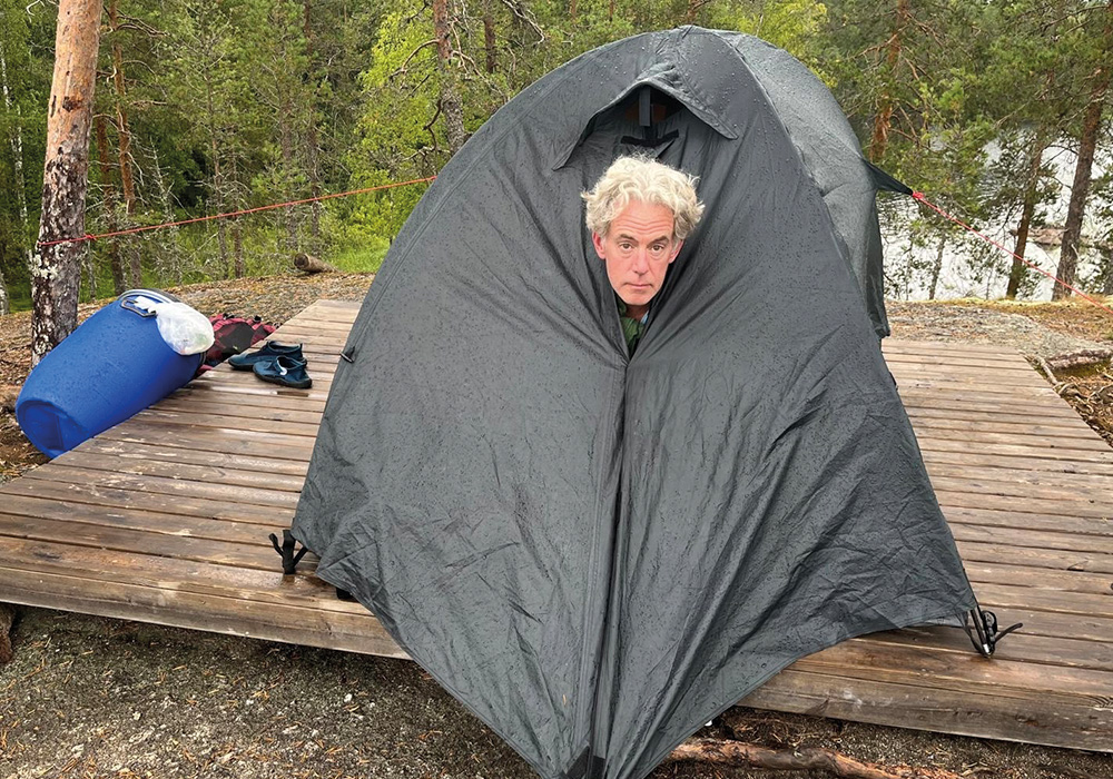 After receiving an answer in the negative, he stormed from tent platform to tent platform – the ground too rocky to pitch a tent otherwise – inspecting each site, returning to declare, “I know you. You were at Vaajasalo. You don’t snore.”