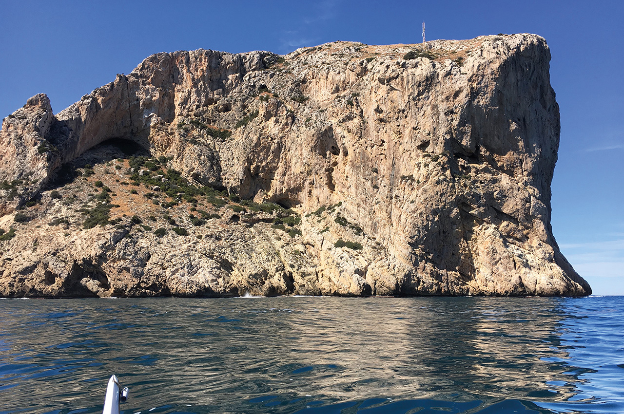 Two miles after leaving Cova Tollada you round a point and on the cliff top in front you’ll see radio masts and the Cap de San Antoni lighthouse. The lighthouse was formerly a watchtower of the ‘Ermita de San Antonio’, a 14th century sanctuary after which the Cape is named. The views from the lighthouse (accessible by road) are stunning and considered amongst the finest on the Valencian coastline.