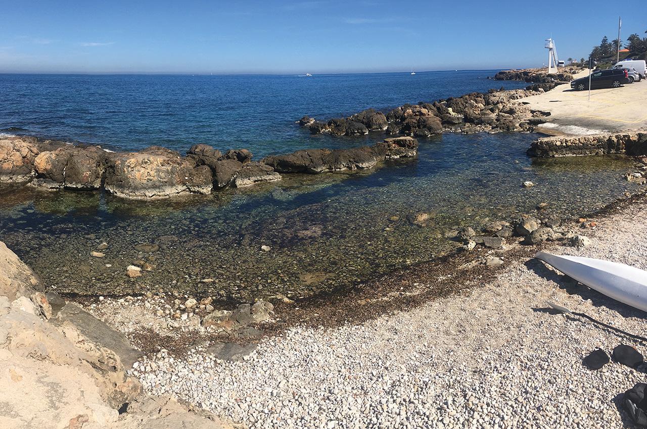 There are various roadside parking and launch options from either Xàbia or Dénia but my favourite is a little protected slipway and cove in Les Rotes just to the east of the port of Dénia. The easiest way to find it is to aim for the sea front restaurant l’eriçó and you’ll see the parking and a small slipway in front of you. There are even two parking spots reserved solely for cars with watercraft. Parking is generally no problem, however, at weekends the restaurant gets busy at lunchtimes and parking is at more of a premium.