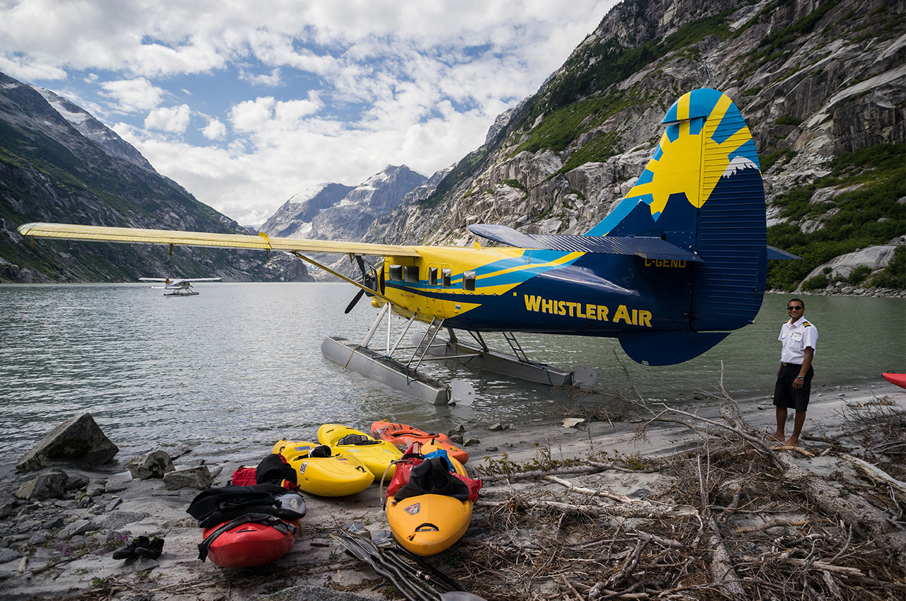 Due to new corporate policy there is no way they could take all of us in the Otter, because kayaks would block an exit door. The best we could do was take six kayaks and one person in the Otter, and the other five of us in the smaller Beaver. Prior to the trip we’d read about $250 a person, but oh the times have changed. Now it takes two pilots, two planes, and around $500 a person. We take time to consider. It’s not every day that four Austrians and an Italian are in British Columbia, so we were all in.