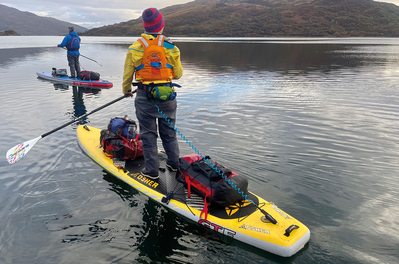 Days three and four were our overnight trip, so an evening of very thoughtful and careful packing as nothing could be forgotten. I could physically fit inside my largest dry bag, but now it was rammed full with tent, sleeping bag, mat, food, first aid – the list was long. I also had a reasonably hefty day bag for the front of my board.