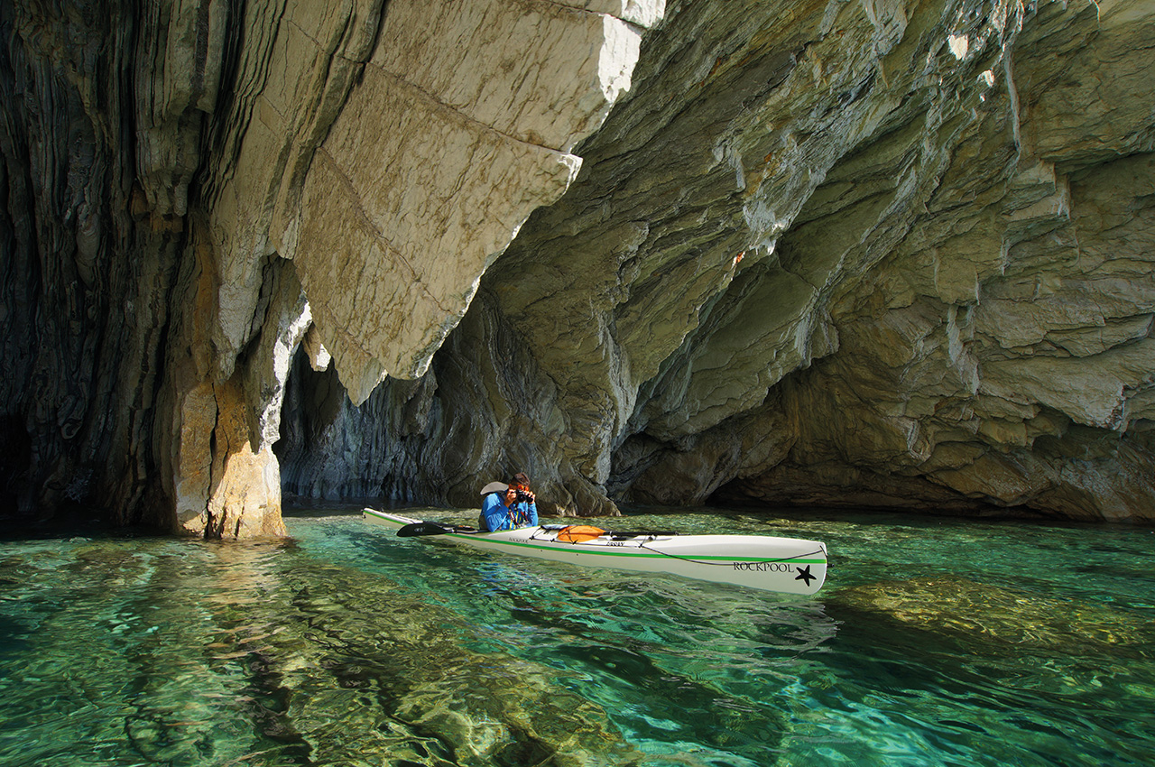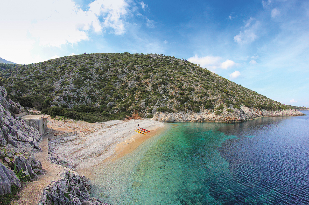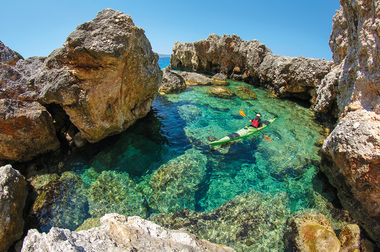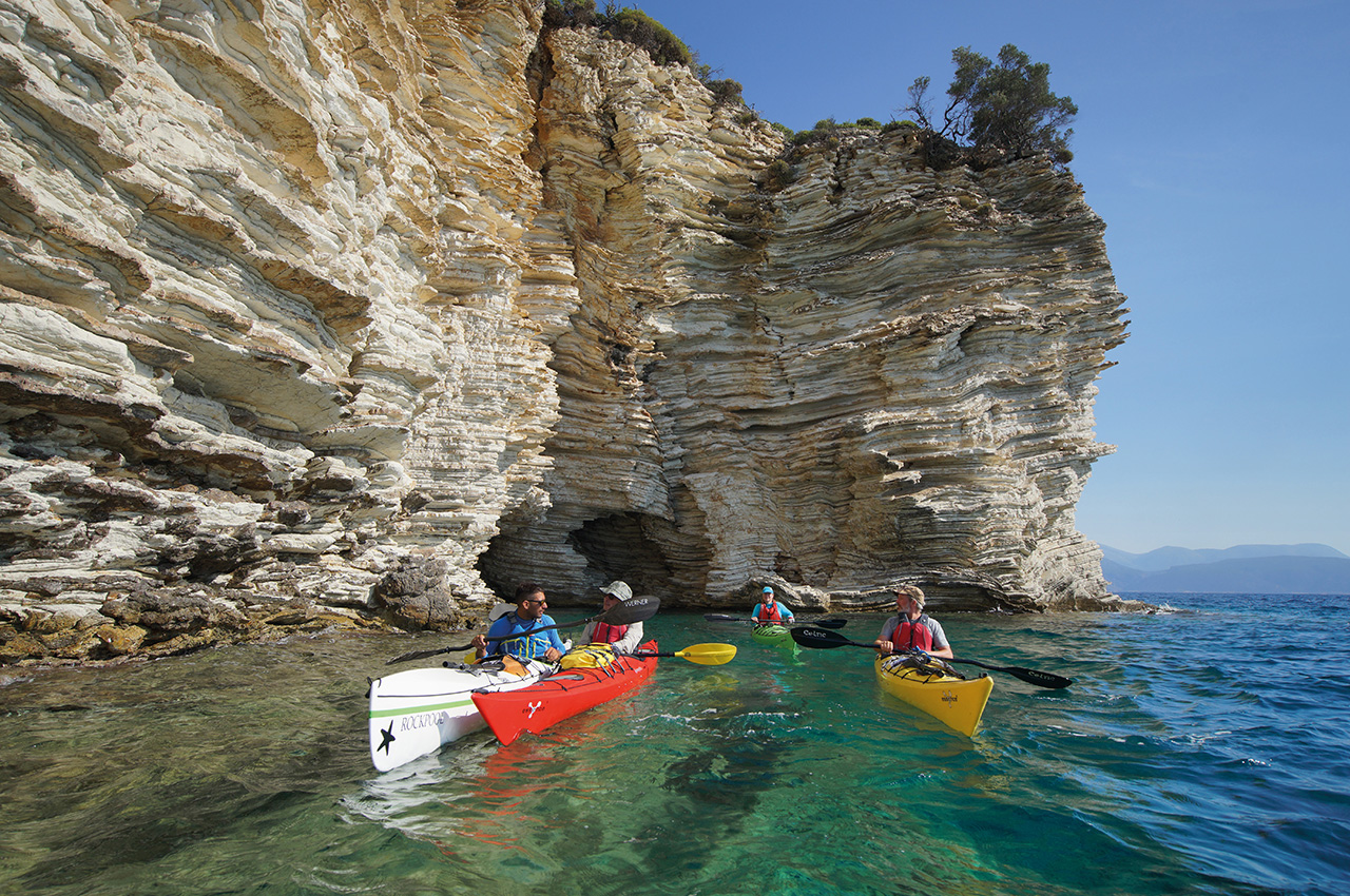This area is an archipelago of many islands which make loading your kayak and setting off an adventure of discovery. Of course, there are many open water crossings but generally, there is a fantastic taverna with fresh fish, cold beers and local produce at the landing spots. The islands of the Inland Sea is where time has stood still. Rattly cars with number plates from the 80s drive around on the only road there is and the locals come out to say hello and watch these strange people that venture out to sea using these nutty crafts.