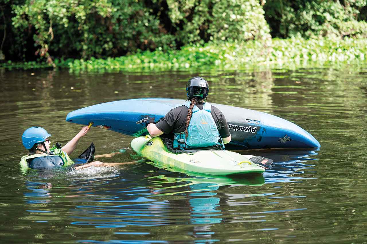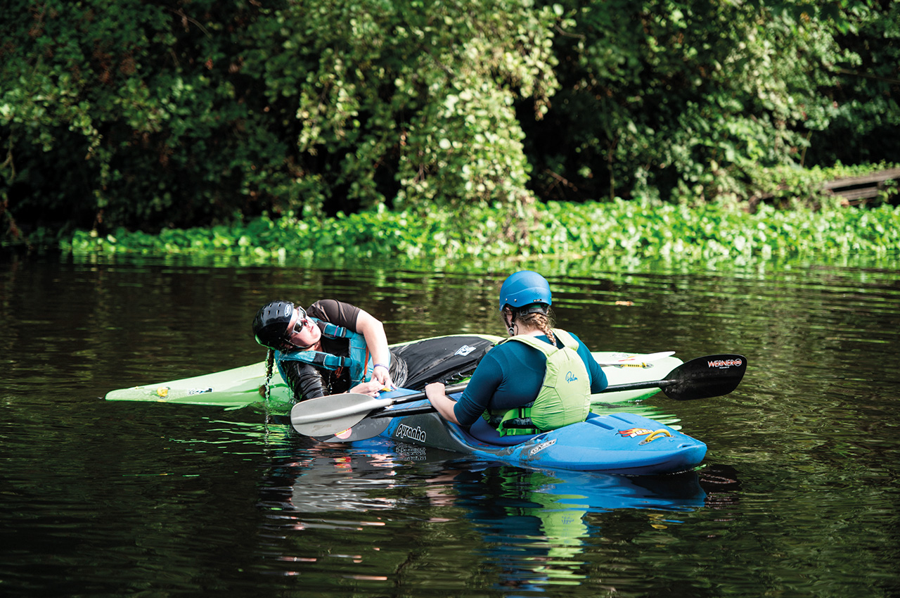 The day’s final session focused on rescues and was split by craft. I went along to the kayak session being led by Sam. Seeing the perseverance and determination of the paddlers in this group was impressive. Rescuing a water-filled kayak from your boat and then getting the paddler back into it is challenging. It was an extraordinary session to see!