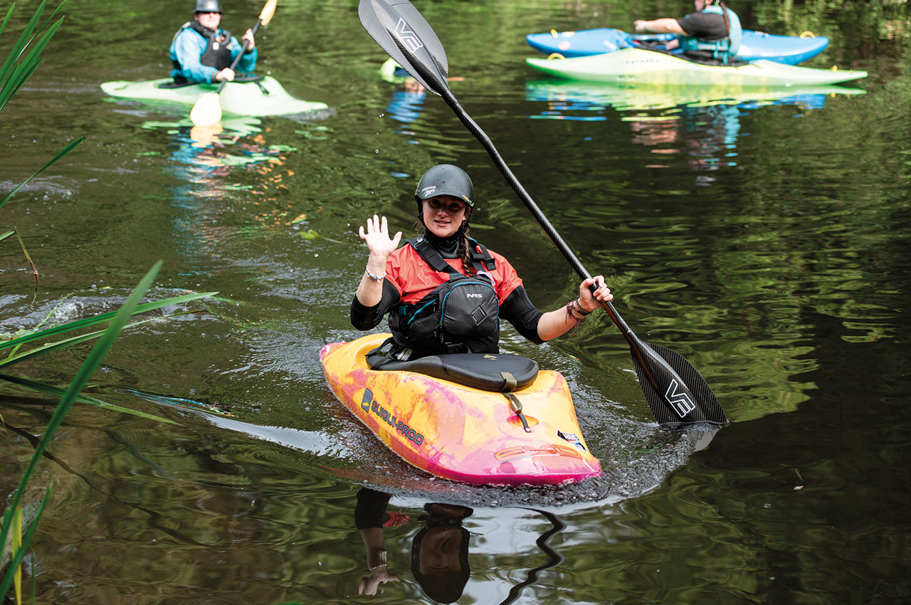 I swapped my kayak for a camera for the morning and saw many freestyle sessions. Becky is an outstanding coach, and it was great to see her introduce some basic moves and drills for everyone to practice before demonstrating how that would result in a freestyle move. Every flat water cartwheel and loop that she did was met with much delight by her group and bystanders on the bank. Many women remarked how inspiring they had found both the session and Becky/Sophie, which was lovely to hear!