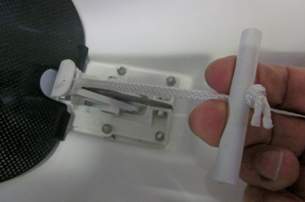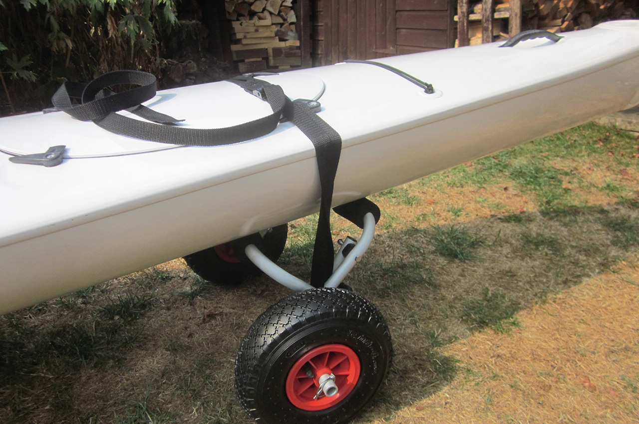 Another area to customise was the self-bailer, as again with the foot boards being fully aft they were so close to the bailer as to prevent easy opening. To rectify this I added a cord and T-bar to open the bailer, closing was easily completed as intended with my heel. So now removal of any cockpit water if there is any, can easily carried out. A 15mm thick shaped foam seat pad attached with Velcro completed my comfort seating requirements. For transportation over long distances I bought a universal kayak trolley with quick release wheels making it easily stowed in the rear hatch when out on the water.