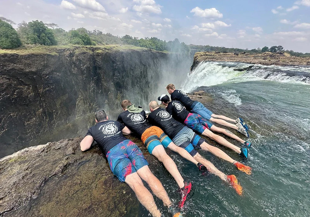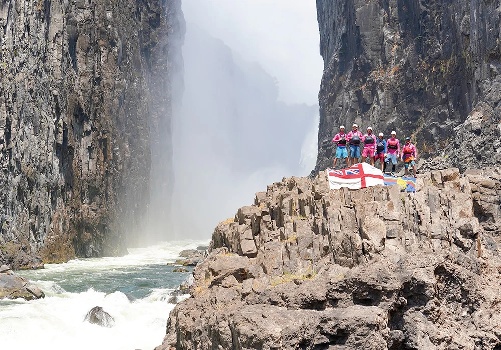For the Royal Navy team, the journey began in the turbulent waters just below Victoria Falls, where the force of the river’s flow immediately introduced them to the intensity of the Zambezi’s rapids. The river meanders through the Batoka Gorge, where 25 rapids with names like ‘The Devil’s Toilet Bowl,’ ‘Stairway to Heaven,’ ‘Commercial Suicide,’ and ‘Oblivion’ awaited. Each rapid tested the team’s skill, concentration, and teamwork, offering an unparalleled river-running experience not found in the UK or Europe.