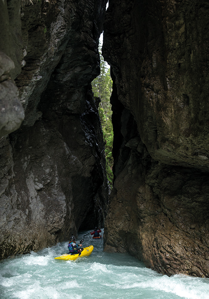 The previous winter’s snowpack was low, and with spring melt due to start in a week, we had a few days off, so I proposed we kayak the Madaubach. Situated in the stunning Lech Valley in the state of Tirol, the Madaubach Gorge is something special. I first kayaked it in 2020 during COVID-19, when tourists were still banned from visiting but allowed to explore our local area.