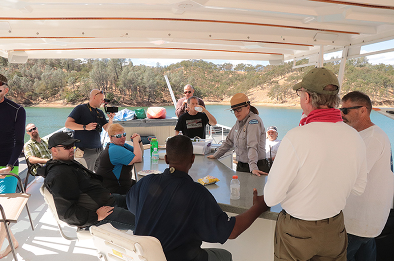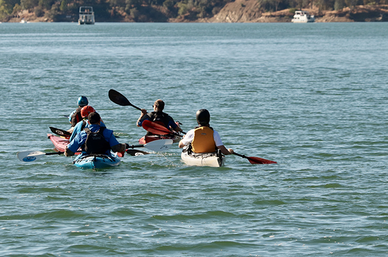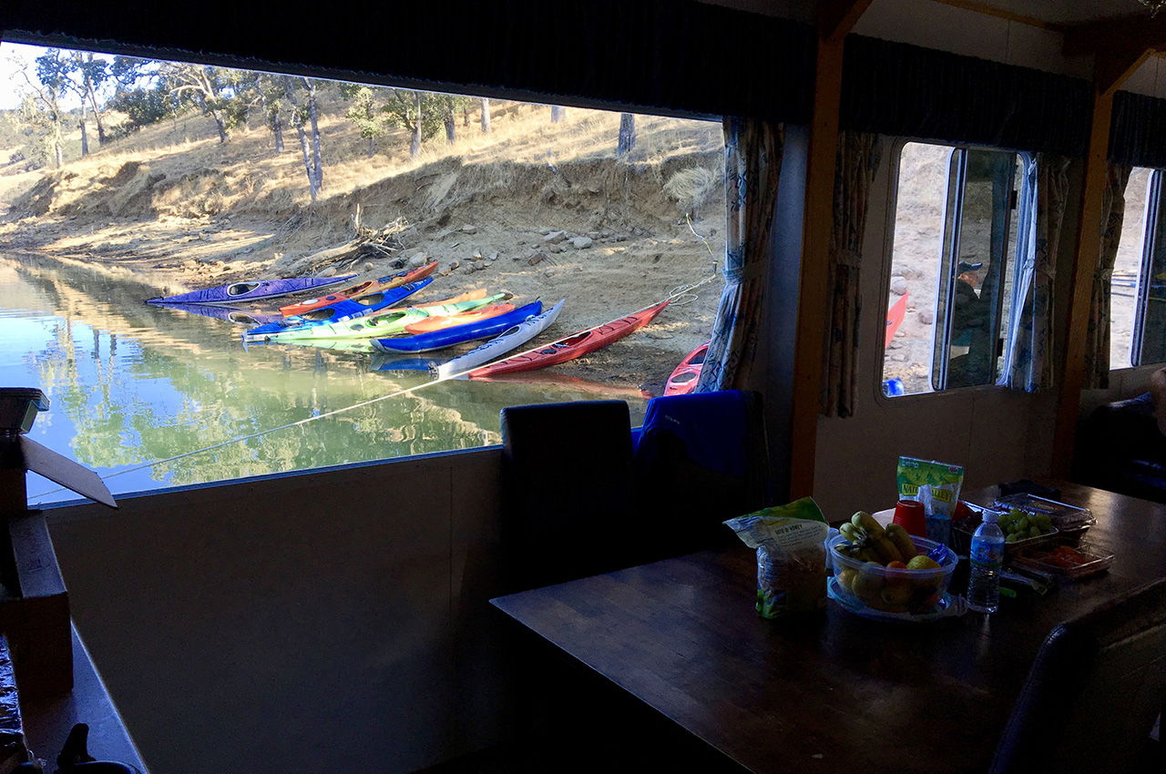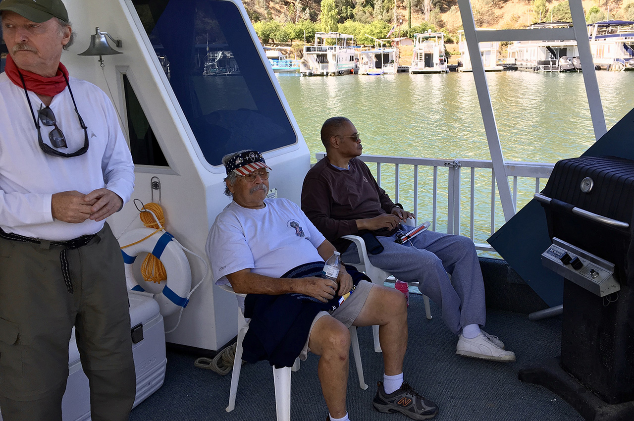 Picture this: A 70-foot luxury houseboat moored in a secluded cove on beautiful Lake Berryessa in California with 79-degree temperatures and crystal clear conditions. This was the base of operations for the first Western Outtasight Clinic, organized to introduce veterans with visual impairments to kayaking skills with the assistance of volunteers who were invited to learn how to guide the visually impaired and assist them in their paddling during the clinic. It was a perfect plan at a perfect place with perfect conditions.