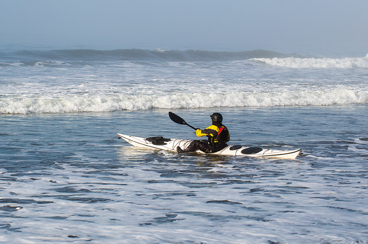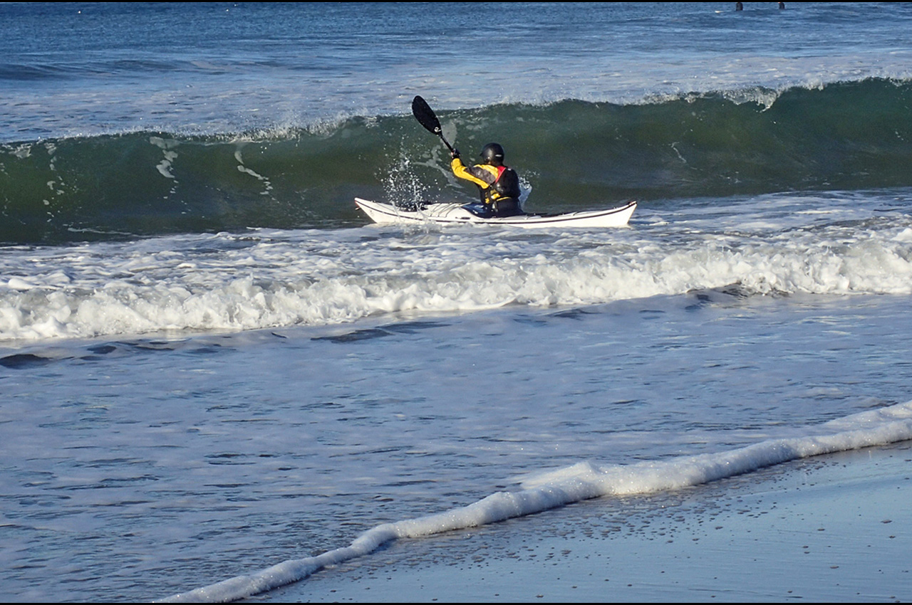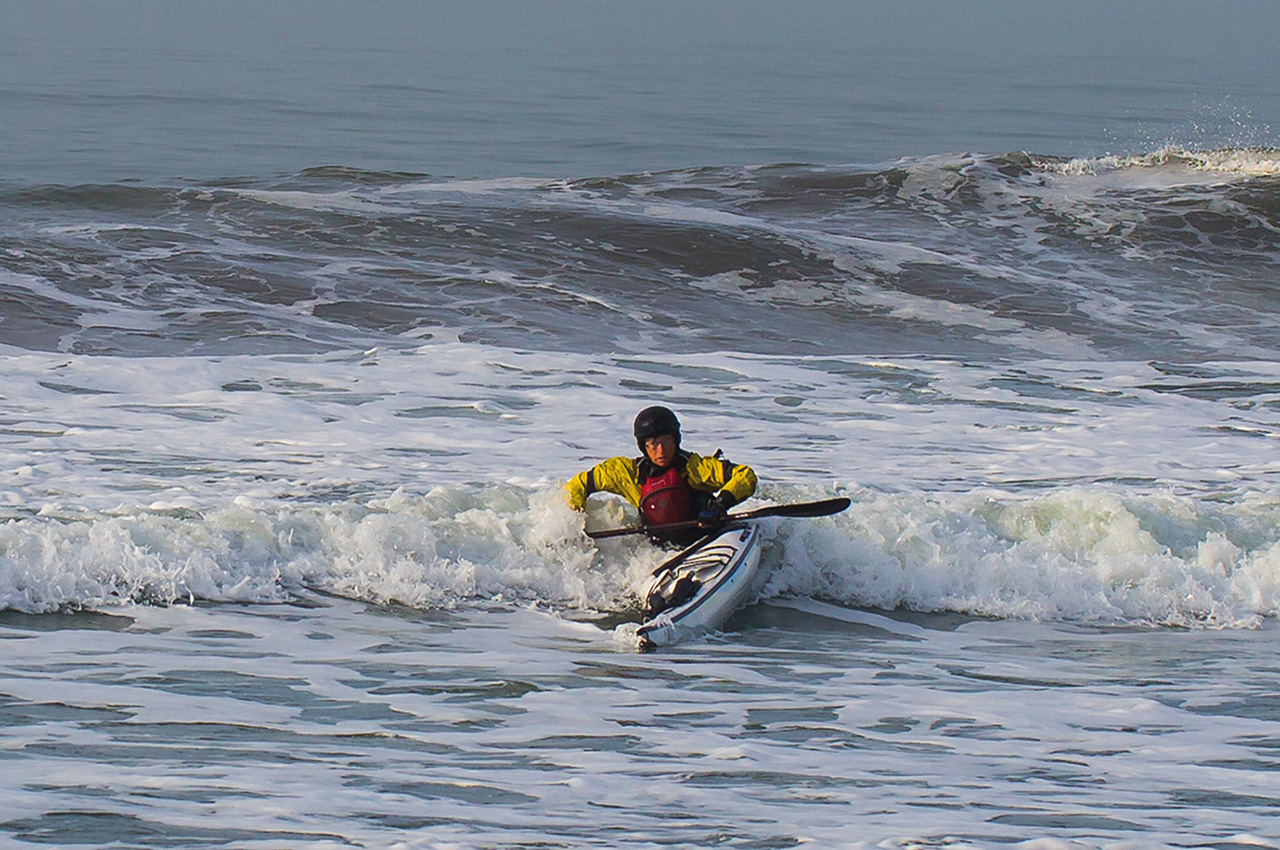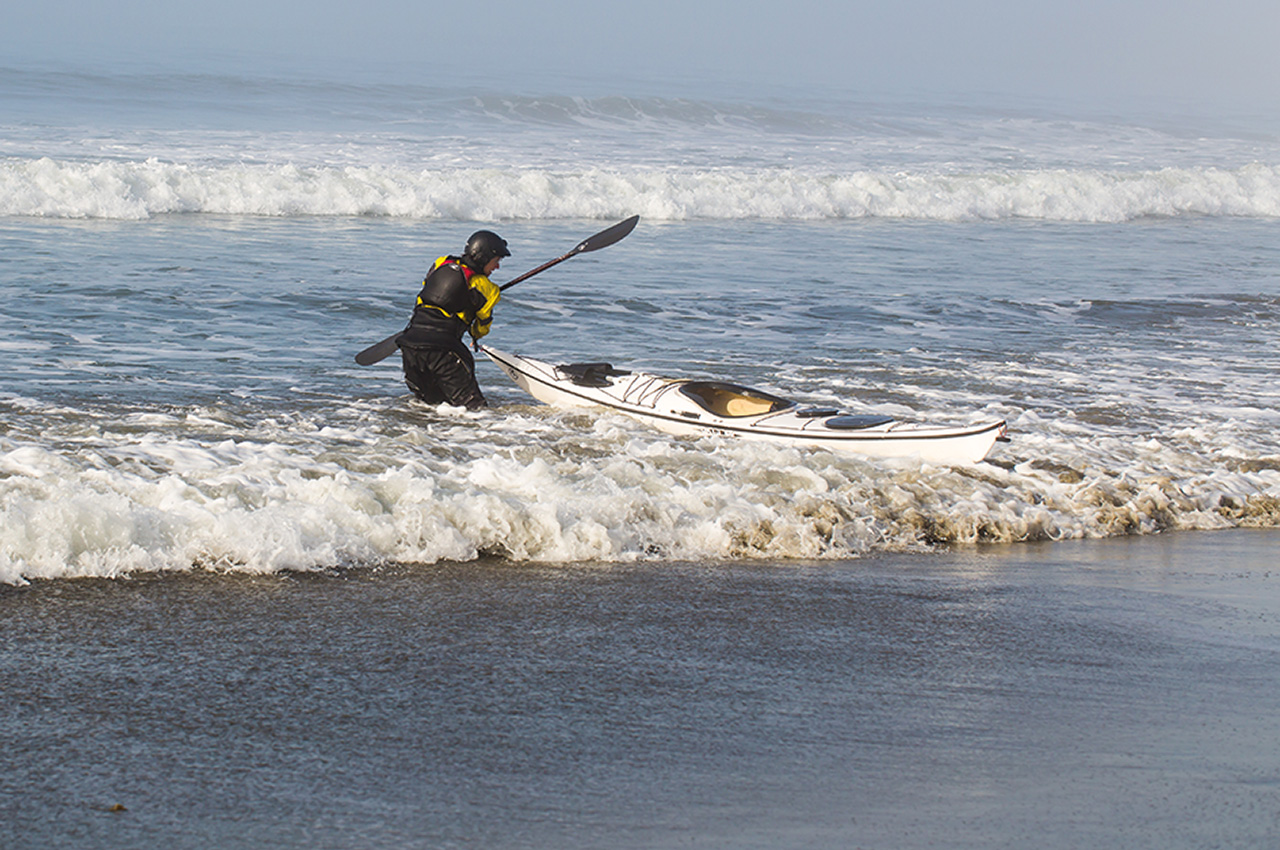 On reaching the sand, wait until you feel your boat ’stick’ on terra firma before popping your spray deck and hopping out or you risk a rude surprise as you find yourself still swirling about and potentially being pulled back toward ongoing wave action, with an open cockpit to boot. Once you feel the earth grab you properly, get your spray deck off, hop out quickly and pull the boat up the beach to make sure you are well out of the way of any bigger waves that may have followed you in!