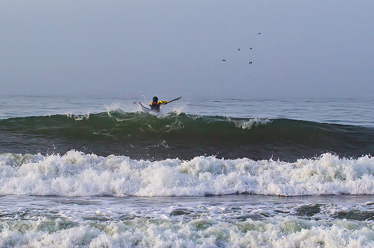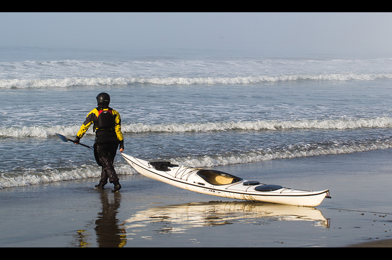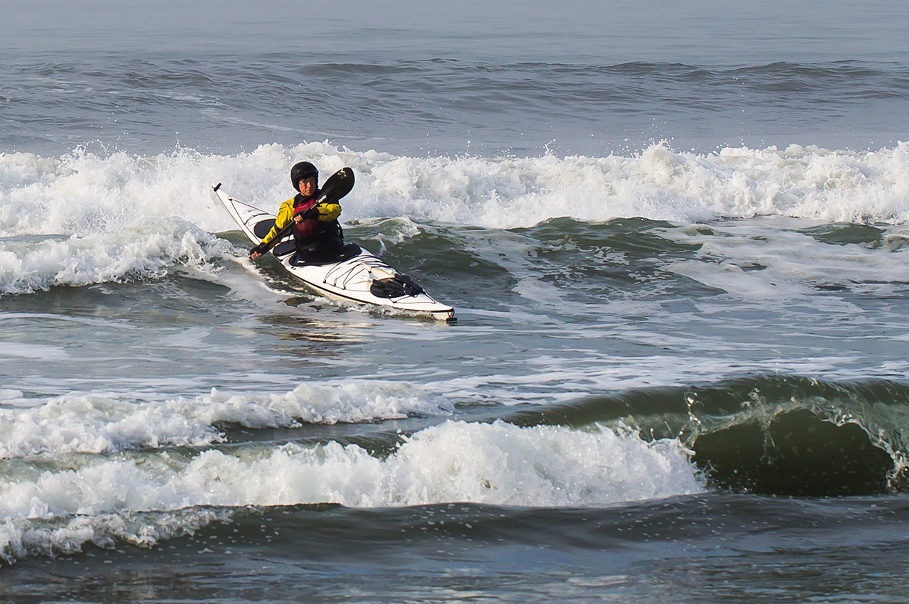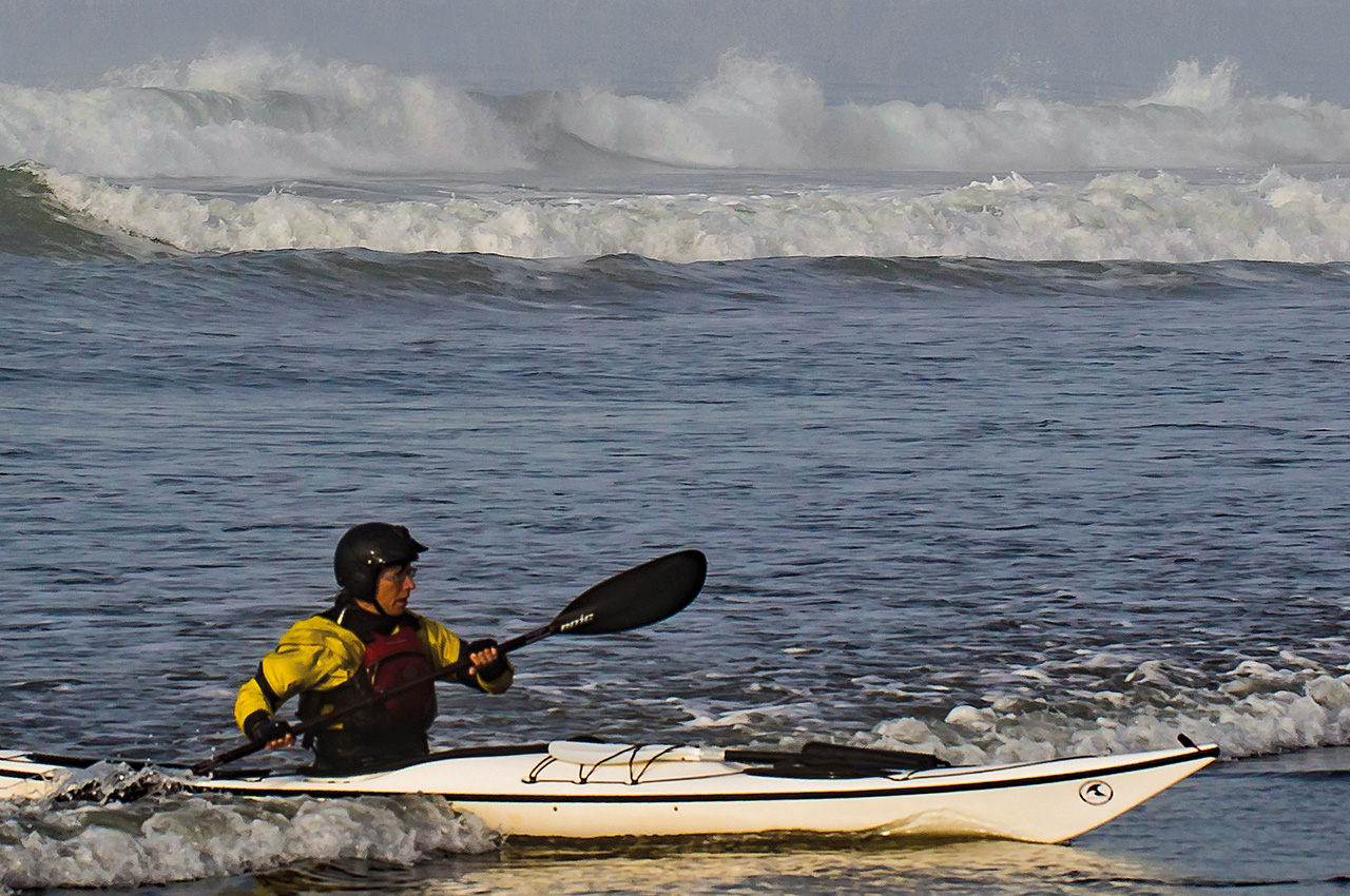 On reaching the sand, wait until you feel your boat ’stick’ on terra firma before popping your spray deck and hopping out or you risk a rude surprise as you find yourself still swirling about and potentially being pulled back toward ongoing wave action, with an open cockpit to boot. Once you feel the earth grab you properly, get your spray deck off, hop out quickly and pull the boat up the beach to make sure you are well out of the way of any bigger waves that may have followed you in!