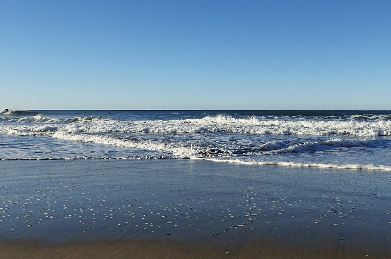 Also important to look for from the beach are rips, also called rip currents. These are areas where water flows strongly back out to sea and are often detectable by the fact that the waves are consistently smaller or even absent in the area of the rip. Rips are important for two reasons. They can provide you with a very convenient outward-flowing conveyer belt through a region of consistently smaller waves and can therefore make your job much easier if you launch directly into the rip. On the other hand, if you find yourself out of your boat in a rip, you can quite rapidly be swept out to sea. In this situation, it is important to swim parallel to the beach to get out of the outward-flowing current before you try to swim back towards land.