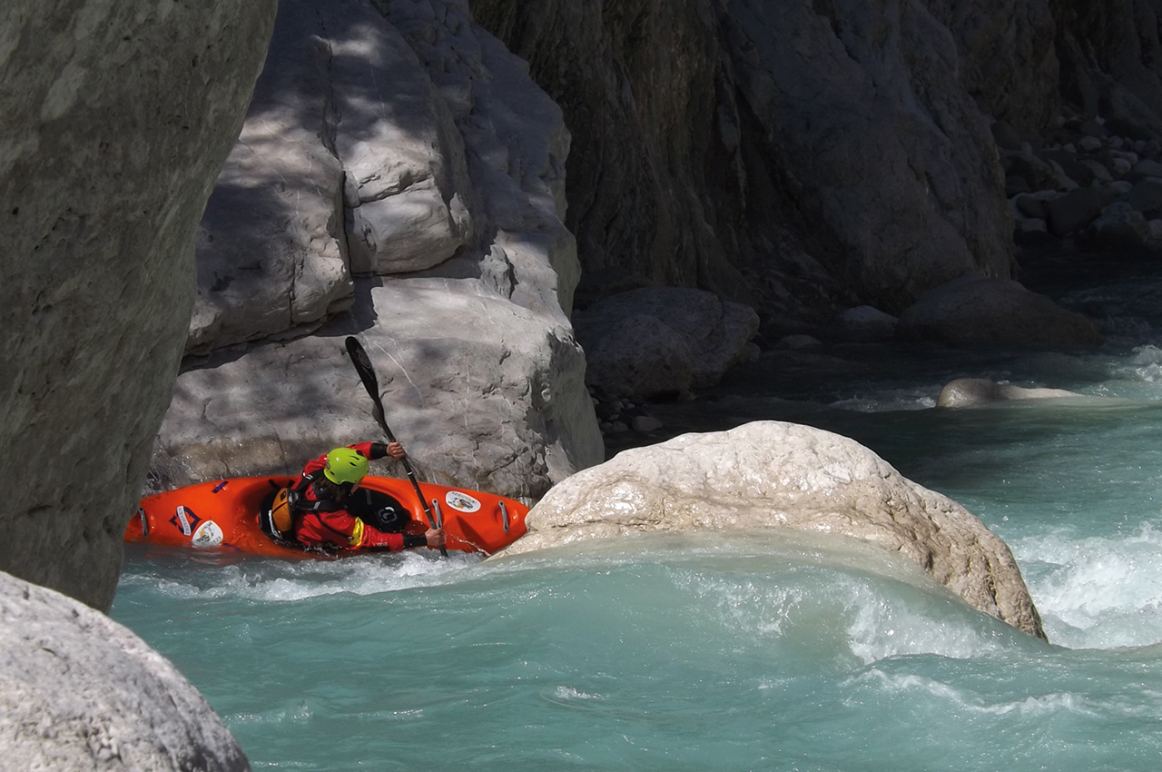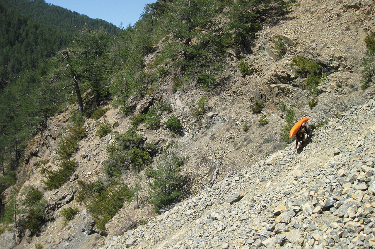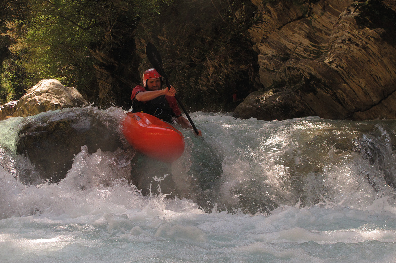 The Greek geography offers a huge amount of mountain ranges over 2,000 metres with considerable snowpack, so in spring especially, you have an excellent chance of finding a good flow, while paddling in short sleeves in the sun. Apart from Class III, there are quite a few more demanding and extremely beautiful runs like Aoös and its remote feeder, Arcoudorema, in the Valiacalda, which means ’warm valley’. I guess the name is ironic, even if you are definitely warm when you reach the put in of the Arcoudorema, as you will have hiked in for several hours.