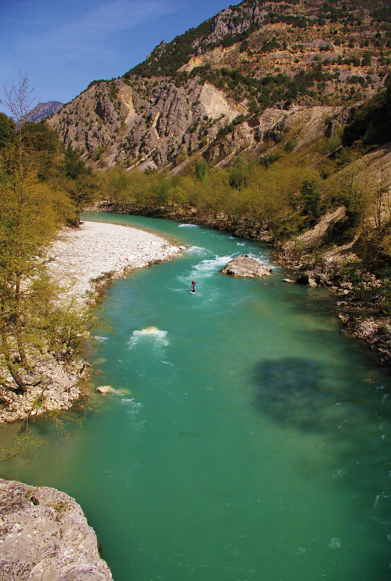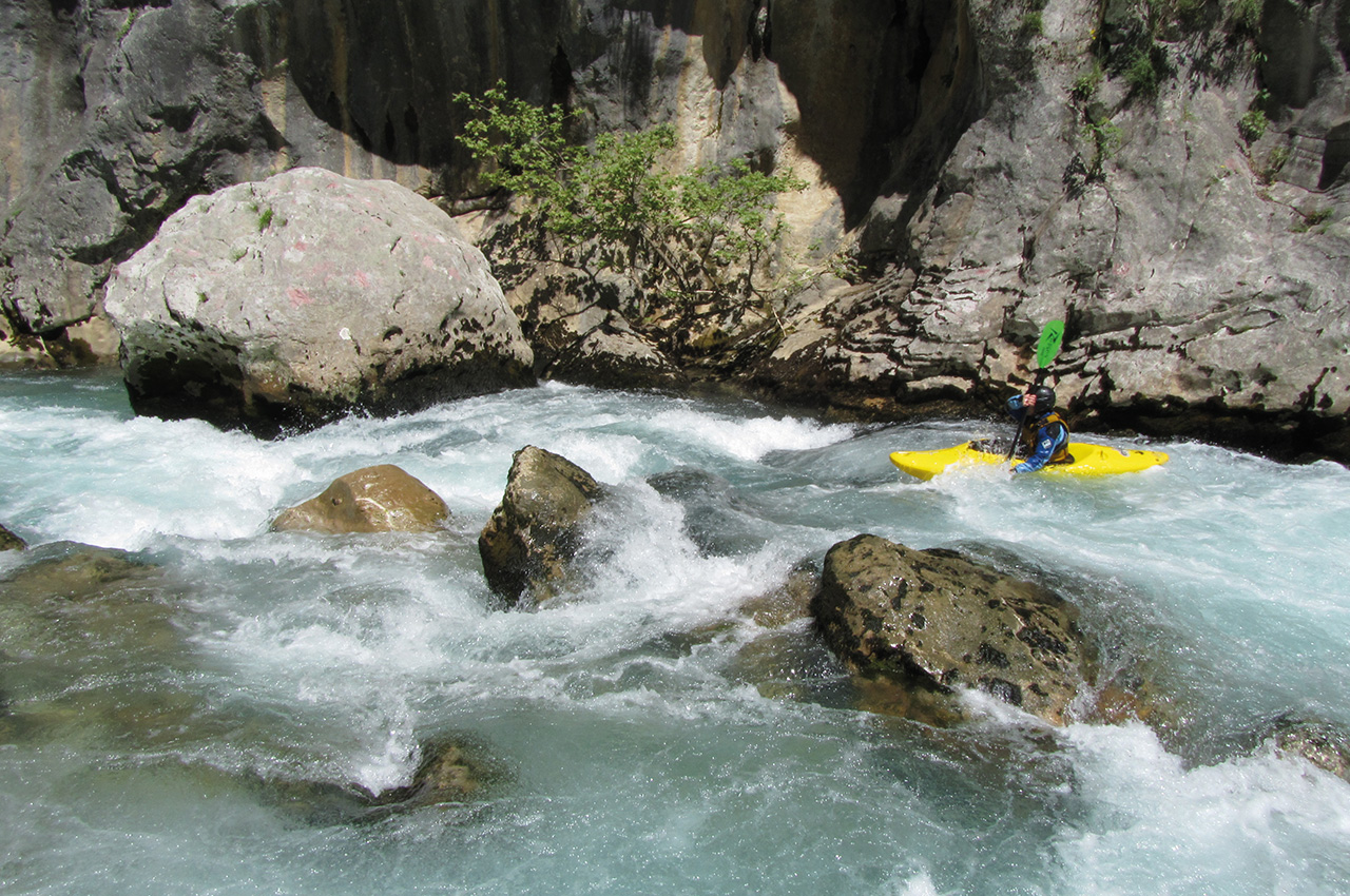 When you paddle back to Greece you can find the next river and landscape highlight only 20km south: the Voidomatis River, which is known for its crystal clear waters. A 40-minute portage brings you down to a put in of almost surreal beauty in one of the deepest canyons in Europe. It offers Class III-IV whitewater in the upper section and still very beautiful Class I-II whitewater in the lower section.