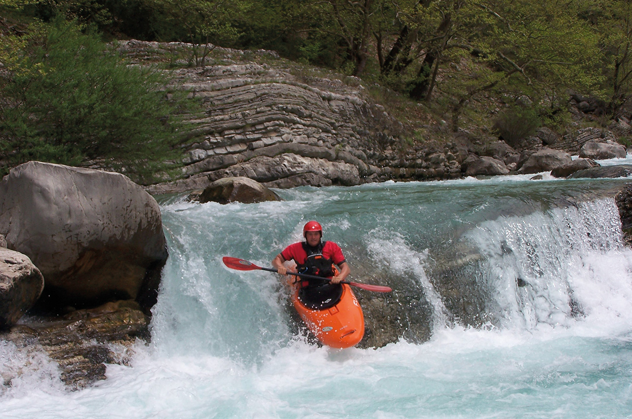 If you are up to longer and more venturesome holidays, it’s also possible to make a road trip and discover many other rivers of Greece. Among them you find some river gods such as the Aoös, 75km of Class III-V in three sections, making its way down through amazing gorges with some serious creeking and waterfalls at the beginning, with classic whitewater in the middle sections. As soon as the Aoös River reaches Albania, it simply changes its name to Vjosa and continues to offer open Class II-III playful whitewater.