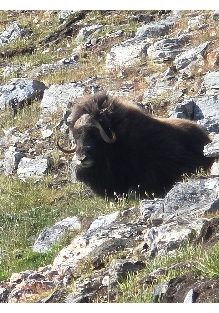 Qaanaaq finally felt within my grasp – 300km left. The weather was deteriorating a little from now on. I’d lose three days to high winds – the scoot along the coast from Kap York westwards is a fantastic journey – plenty of camping spots and actual greenery – this is prime muskox territory, and there were a few boats with hunters either off to shoot them or returning with a full boat.