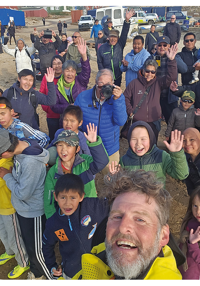 As I closed on the long, recently built jetty, I made out the figure of hundreds of people lined up – despite it being clear daylight 24/7, a bunch of fireworks was set off, and several traditional qajaqs skimmed out to meet me and escort me in. At this point, I was struggling to keep the tears in, and once the singing floated out to greet me from over half the town that was waiting for me, I was crying like a baby.