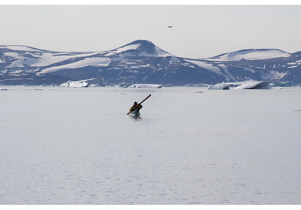 On those long legs, the land ahead doesn’t get any closer for hours. No amount of singing or whistling at the seals makes it pass any quicker, and it’s depressingly monotonous. But then you can slowly make out details of the land, the oil tanks that are a big feature of every settlement, and then the buildings and their bright primary colours. About 2km away, three hunters’ boats came out to greet me, firing rifles into the air.