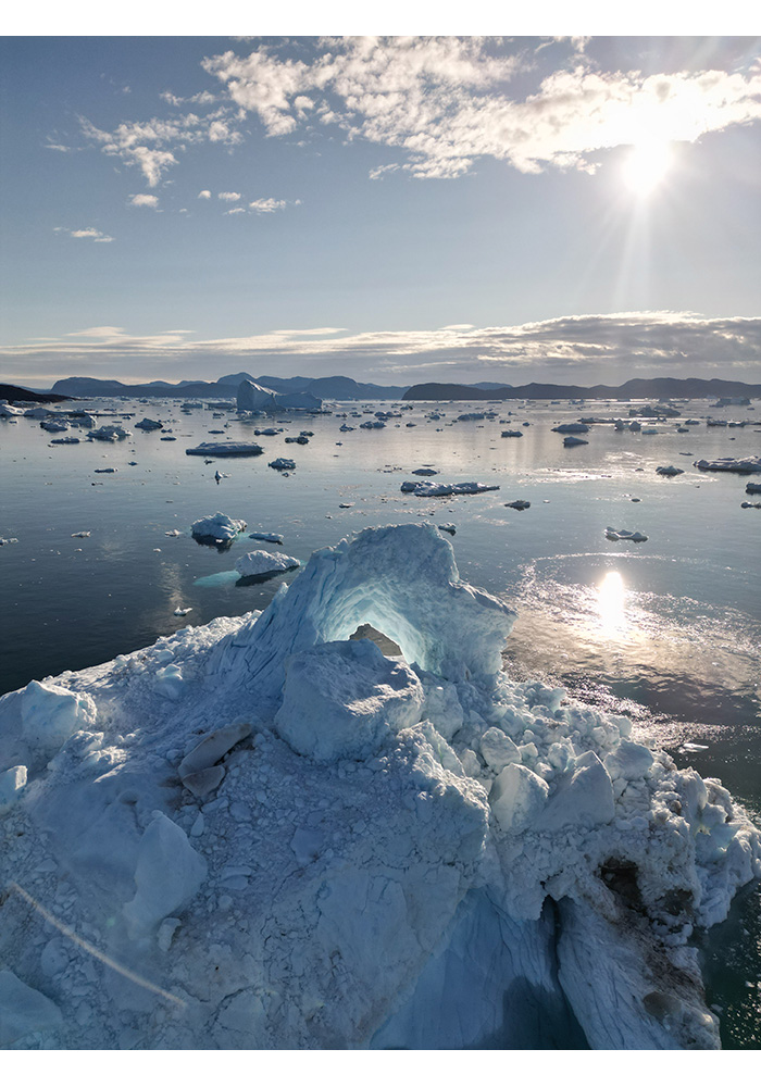 The next day looked good – the boat would hang about a bit closer as the ice farther north was thick and routes to land and camp far between. If I couldn’t reach the mainland, I had a backup island as a potential Plan B camp spot, but I always knew I had the boat as a Plan C if other options failed. Plan B soon became Plan A as I had to continually head westwards to avoid large sections of sea ice and icebergs – there was also plenty of fresh sea ice forming despite the weather being sunny, qajaqing through this fresh ice is quite draining; it feels like someone’s hanging onto the back of the qajaq and cutting your speed right down.