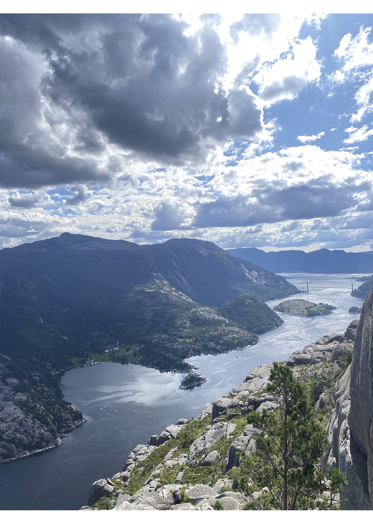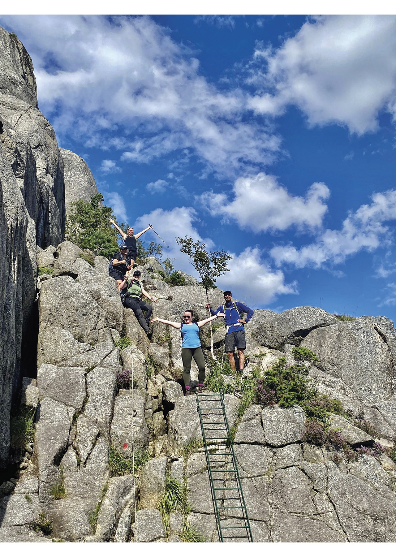 We spent a couple of days hiking along the fjord to help rest our arms from all the new kayaking. Hikes in Norway are extreme and sometimes involve sheer drops and ladders, and trails involve bushwhacking through the vegetation to enjoy access to the plateau at the top of the fjord. It was an exciting experience, especially as getting up high helps you appreciate the vast size of the fjords we had been paddling on.