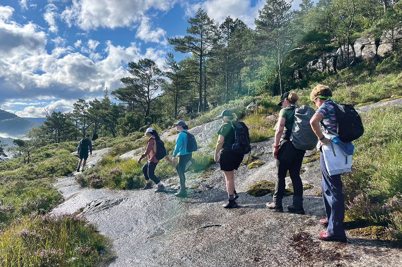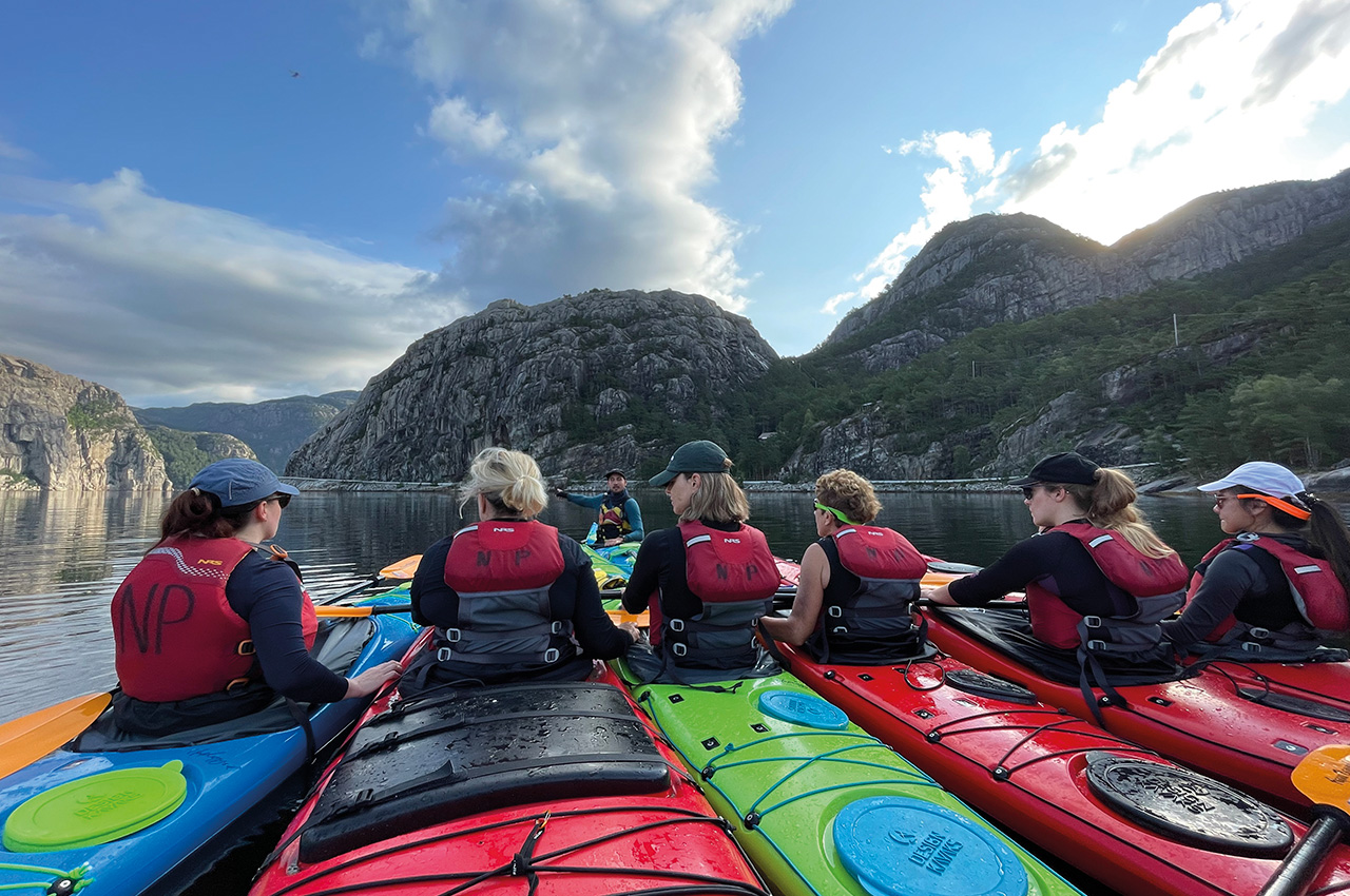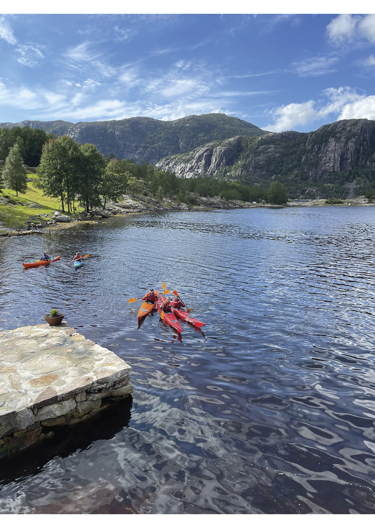 Trips out in the fjord were gently built up in distance and exposure. Lysefjord, or light fjord, is 42km long and stunningly beautiful due to its lighter-coloured rock walls and famous pulpit rock, which towers 604 meters above the sea. This landmark was used in the iconic film Mission Impossible – Fallout and is certainly impressive to see from the water or land.