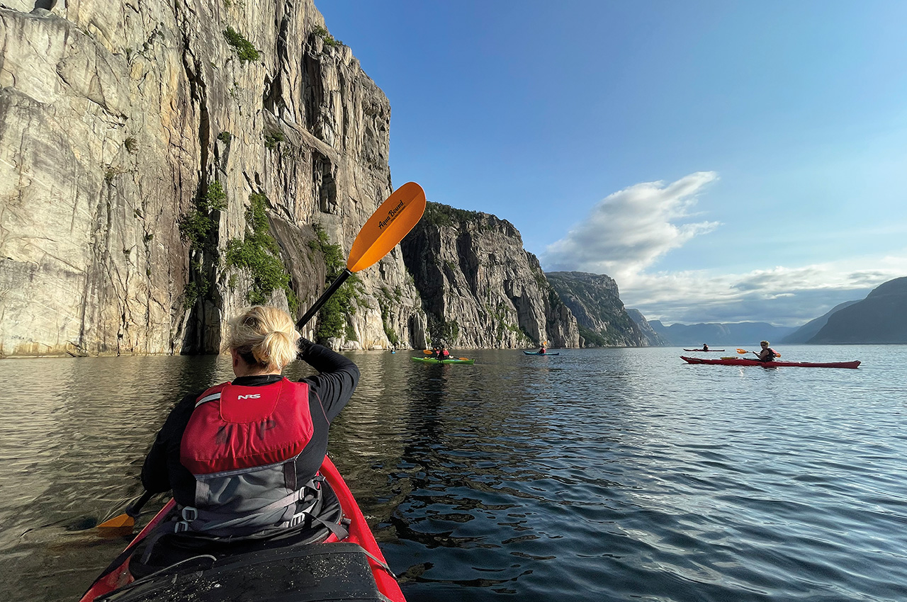 The course was a week-long set in the stunning Lysefjord Fjord, which is only an hour’s drive from Stavanger and is about the same flight time from major British airports. Nordic paddling kayak school is located on the banks of a sheltered cove on the fjord, ensuring protection from the more exposed sections, which can kick up advanced open water conditions with clapotis from the shear-sided cliff walls. Around the shoreline is a quiet, wild camping area hidden away as Nordic Paddling also offers multi-day trips and experiences.