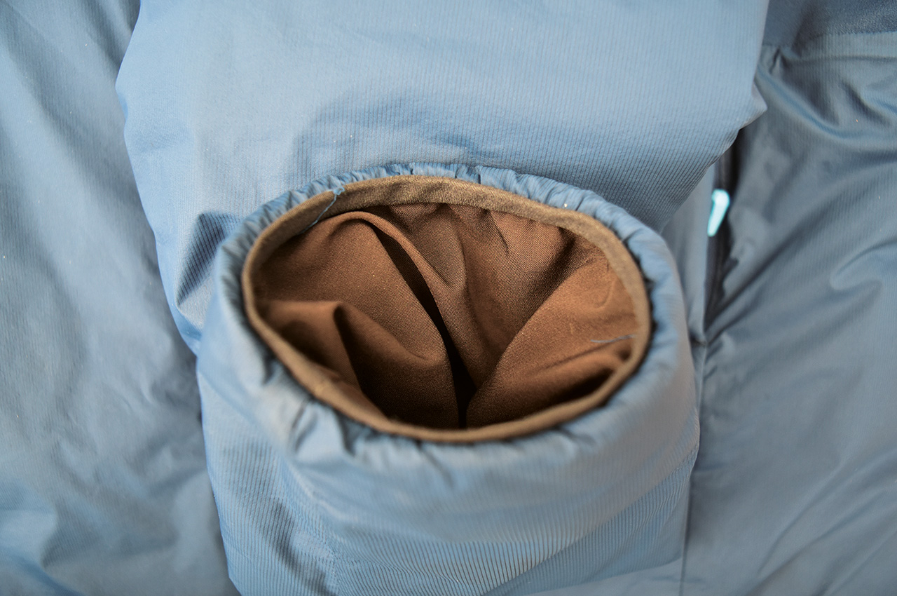 It’s also unrestricted in movement, thanks to stretch panels under the armpits with the layers of the jacket gliding very easily over each other. There’s also ample room in the shoulders and around the chest and never feels tight or restrained. The cuffs are not tight but stay in place regardless and it’s finished with a loose fitting hood that neatly comes down over the forehead.