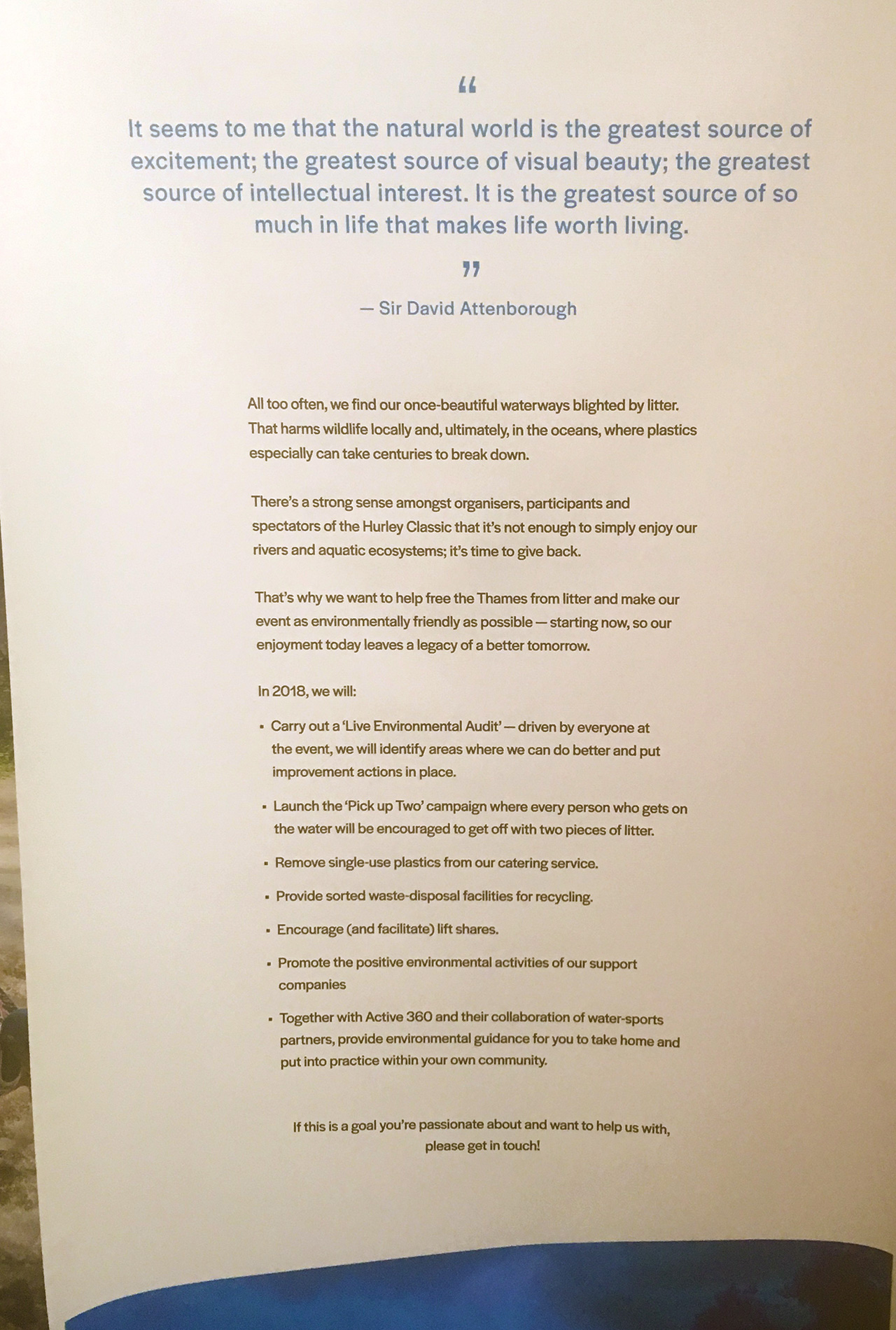 Earlier this year, Active360 produced a checklist for waterside events to help them to reduce the amount of plastic trash they generate. This can be huge as traditionally events have used plastic cups, cutlery, food packaging and plastic drinks bottles.