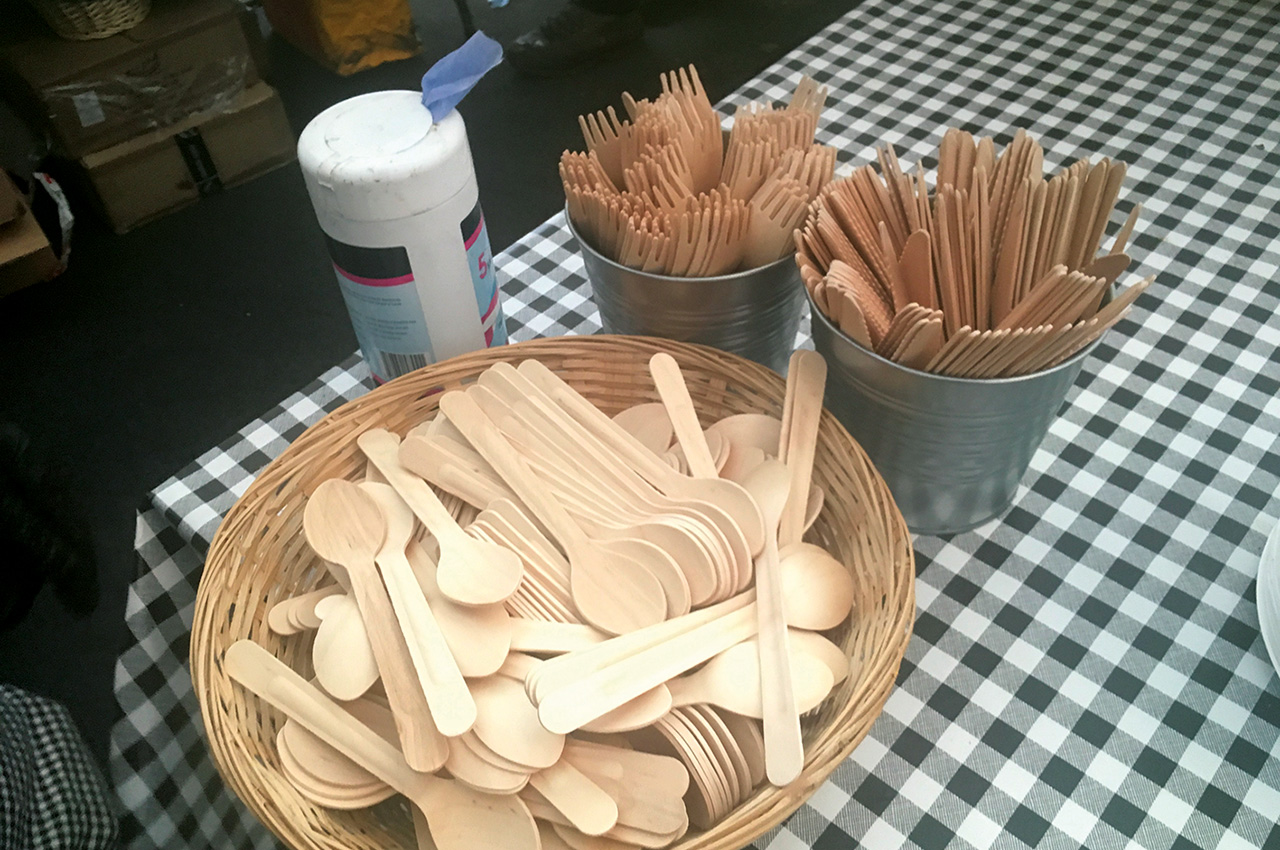 The team of organisers adopted our checklist and took a range of measures to greatly reduce single plastic and generally reduce any detrimental impact on the river. So no bottled water or plastic bottled drinks were sold or given out and there were plenty of tap water refills, cheaper hot drinks if you bought an event mug or took your own. Also food was served on plates made from leaves, birch cutlery, compostable beer glasses, and transport sharing was encouraged