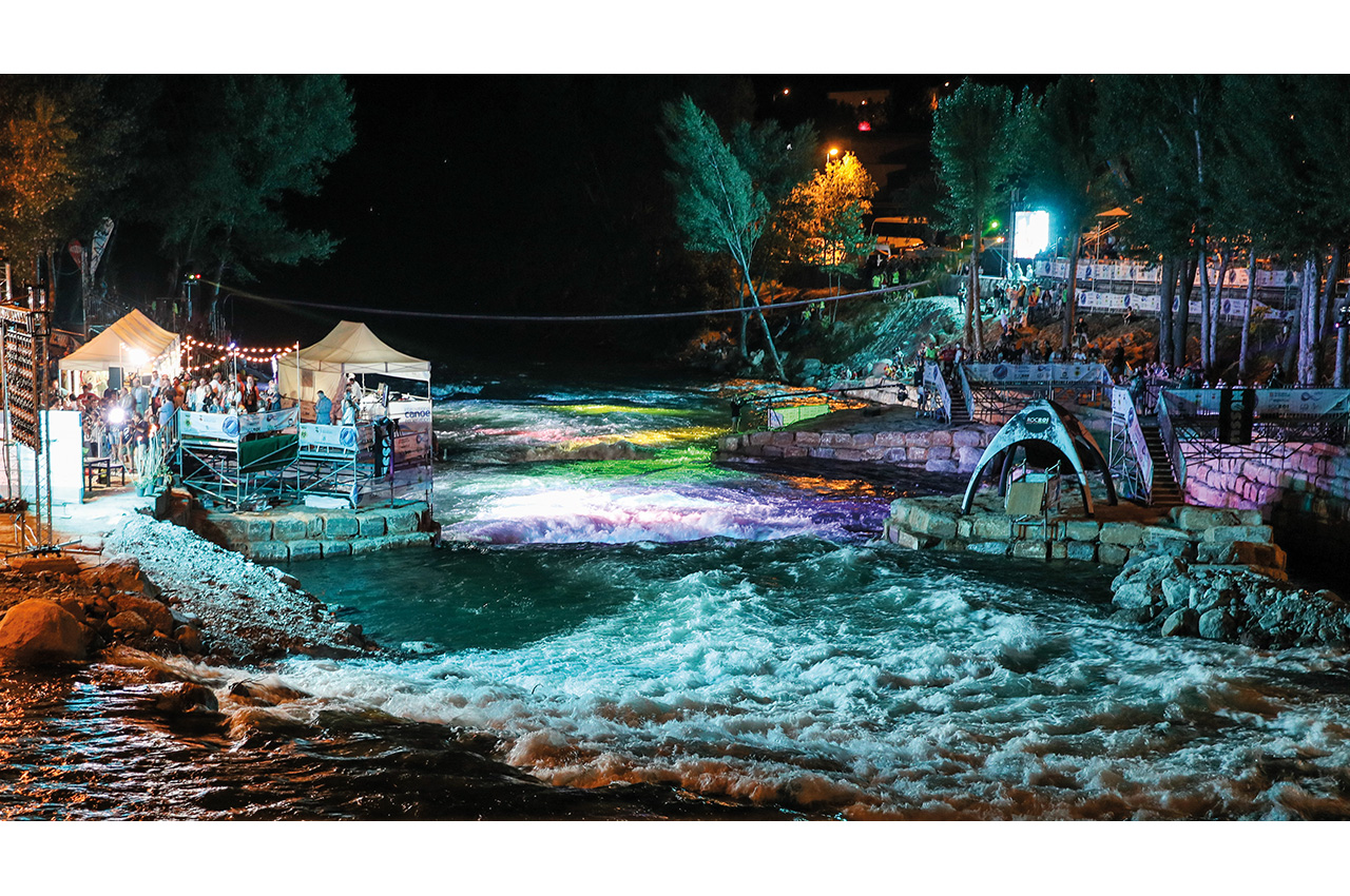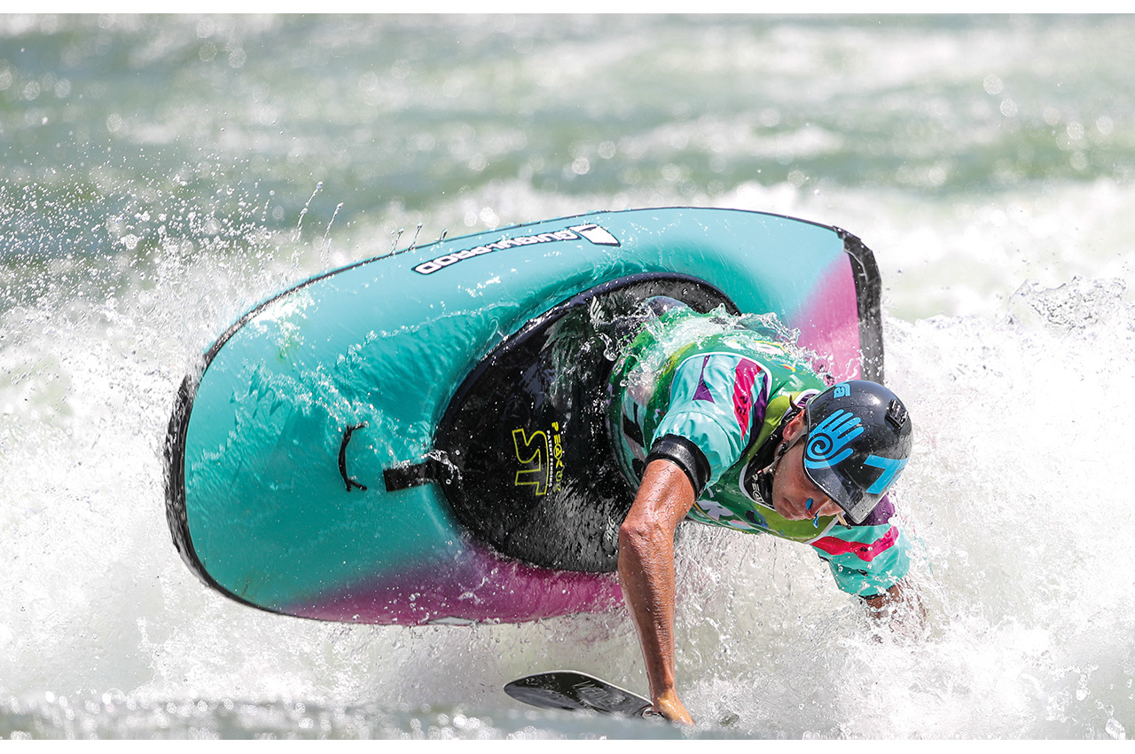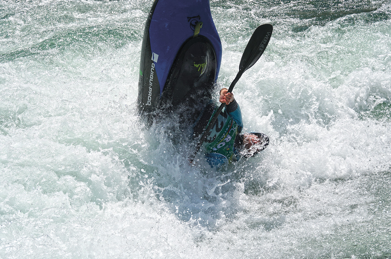 This new feature, built with a million-Euro budget, has transformed the river and surrounding area into something reminiscent of a theme park. The dam release feature turned out to be what many expected: a feisty, powerful hole, shallow in places and difficult to set up in, making the linked combo and trophy moves incredibly difficult to pull off.